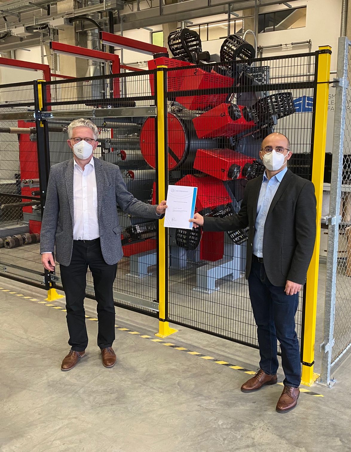 Augsburg/Berlin, 19. März 2021. Die Zuse-Gemeinschaft ist weiter auf Wachstumskurs. Mit der Aufnahme des Instituts für Textiltechnik Augsburg gGmbH (ITA Augsburg) vereint der bundesweit tätige Verbund gemeinnütziger Forschungsinstitute jetzt 77 Mitglieder, davon fünf in Bayern. Der Geschäftsführer des ITA Augsburg, Prof. Dr. Stefan Schlichter, nahm gestern bei einer Feierstunde am Institut offiziell die Mitgliedsurkunde von Dr. Bayram Aslan aus dem Präsidium der Zuse-Gemeinschaft entgegen.