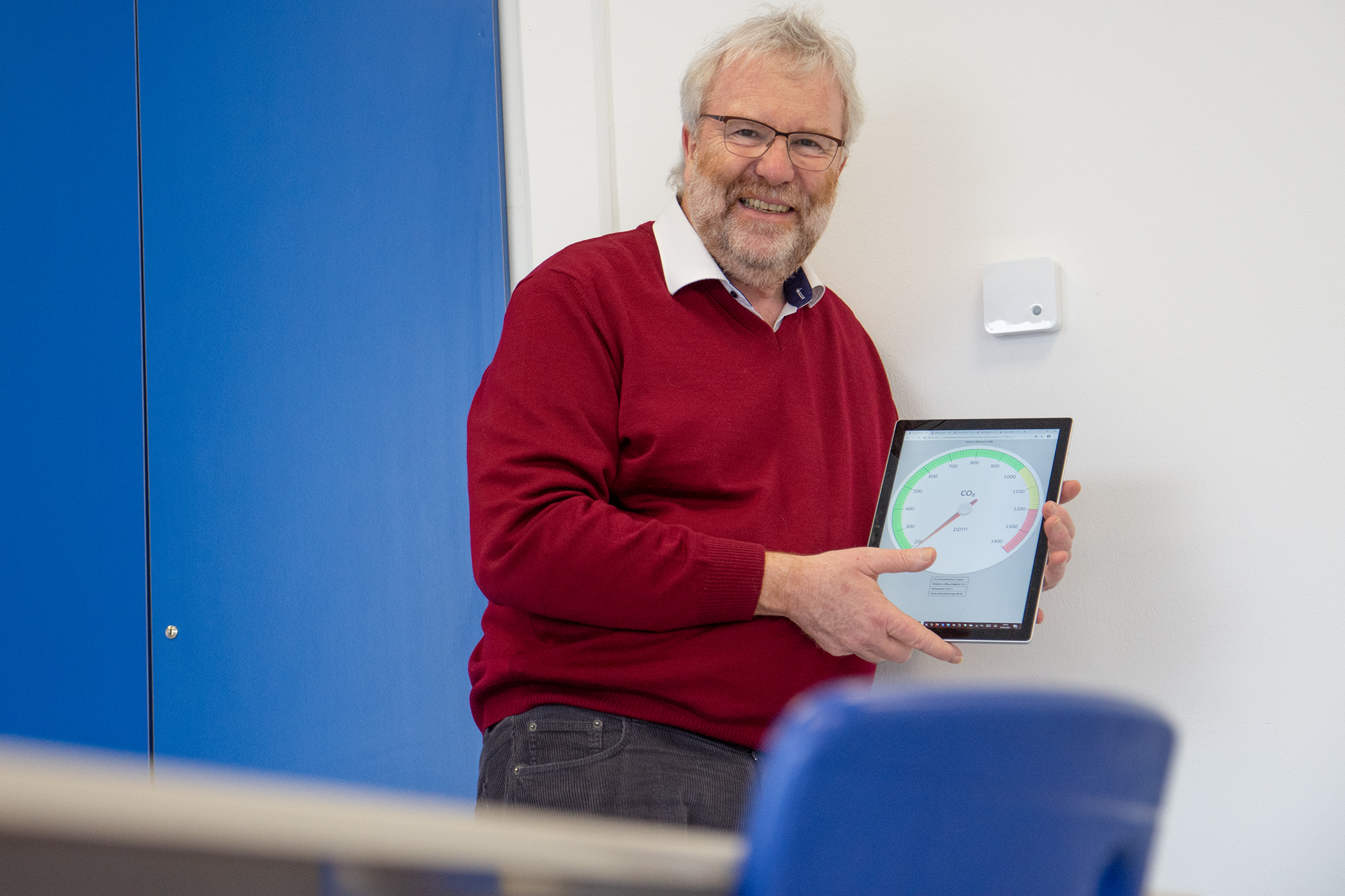 Angestoßen hat das Projekt Prof. Dr. Ralf Simon, der an der TH Bingen im Bereich Virtuelle Kraftwerke lehrt und forscht. Gemeinsam mit der Technik der Hochschule wurden in verschiedenen Gebäuden Messeräte installiert. Diese erfassen neben Raumtemperatur und Luftfeuchte auch die CO2-Konzentration in der Luft. Mithilfe eines QR-Codes können die Nutzer*innen der Räume die jeweils aktuellen Werte auf einer Website ablesen. „Mit den CO2-Messungen schaffen wir für unsere Studierenden bestmögliche Lern- und Arbeitsbedingungen – gerade jetzt während der Prüfungsphase in der Pandemie“, erklärt Professor Simon.
