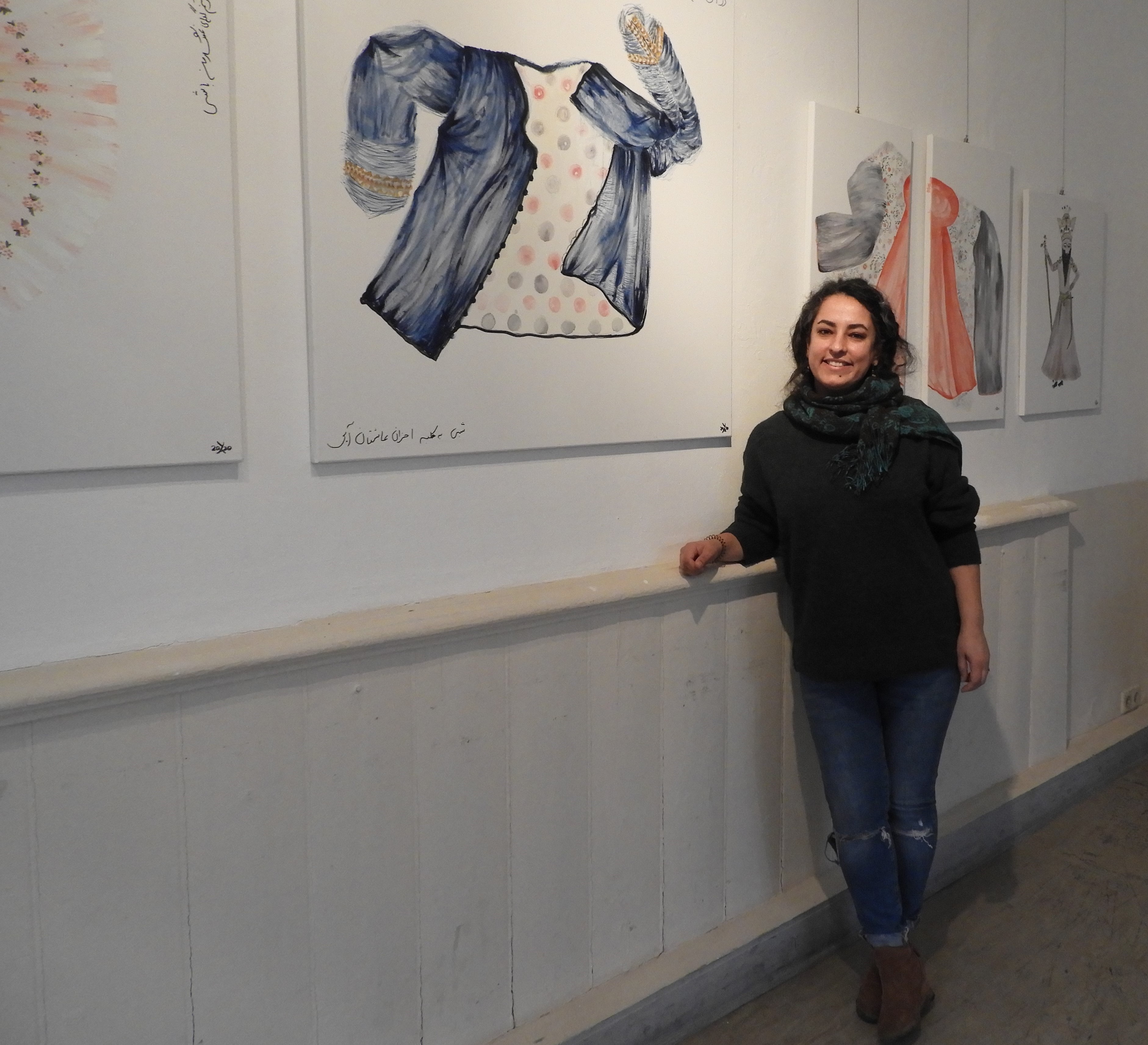 In der Ausstellung zeigt sie neben ihren Bildern auch Originalbekleidung aus dem Iran von 1900.