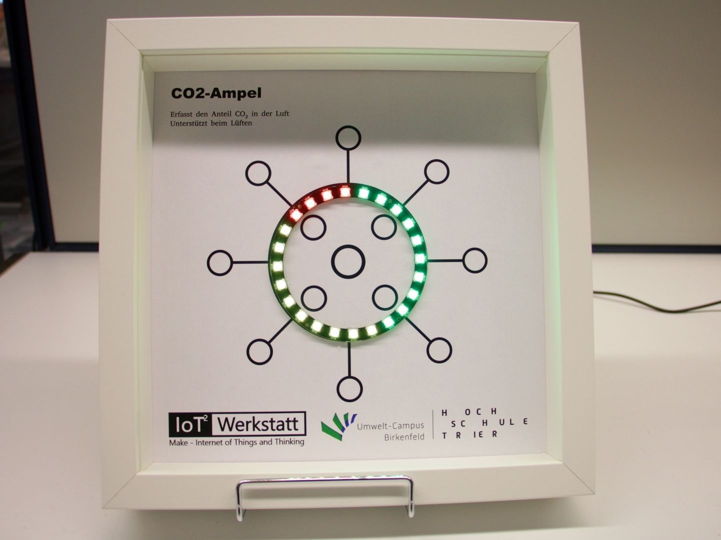 Gemeinsam mit Mitstreiter:innen der IoT2-Werkstatt (Internet der Dinge und des Denkens) aus dem nationalen Digitalgipfel und Guido Burger, einem bundesweit engagierten Maker, haben Forscher des Umwelt-Campus Birkenfeld der HS Trier schon im Sommer aufgezeigt, welches große Potential die Raumluftqualität in Schulen für die Zukunftsfähigkeit der Gesellschaft entwickeln kann. Nicht nur, dass gute Raumluft die Konzentrationsfähigkeit der Lernenden erhöht und damit eigentlich schon vor Corona ein wichtiges Thema im Bildungssystem hätte sein müssen, stellt die Beschäftigung mit den MINT-Hintergründen ein einmaliges Anschauungsobjekt für Algorithmen und das Internet der Dinge dar. Der Selbstbau einer „IoT-CO2-Ampel“ bietet eine einmalige Chance, ein neues fächerübergreifendes Denken im Bildungssystem zu verankern. Gemeinsam im Team etwas Sinnvolles bauen, MINT und Digitalisierung anfassbar machen, Klimagase reduzieren und so die kalte Jahreszeit im Klassenzimmer erträglicher gestalten – das ist die Motivation, die in den letzten Wochen und Monaten hunderte von Selbstbauprojekten an Schulen in Deutschland und in europäischen Nachbarländern begeistert. „Wir sind überrascht von der überwältigenden Resonanz die unser Projekt ausgelöst hat und freuen uns über die vielen ehrenamtlichen Mitstreiter. Zeigt es uns doch, dass wir in der Gesellschaft noch in der Lage sind, neue Herausforderungen gemeinschaftlich zu meistern“, meint Professor Klaus-Uwe Gollmer, einer die Hauptinitiatoren der IoT2-Werkstatt am Umwelt-Campus der HS Trier.