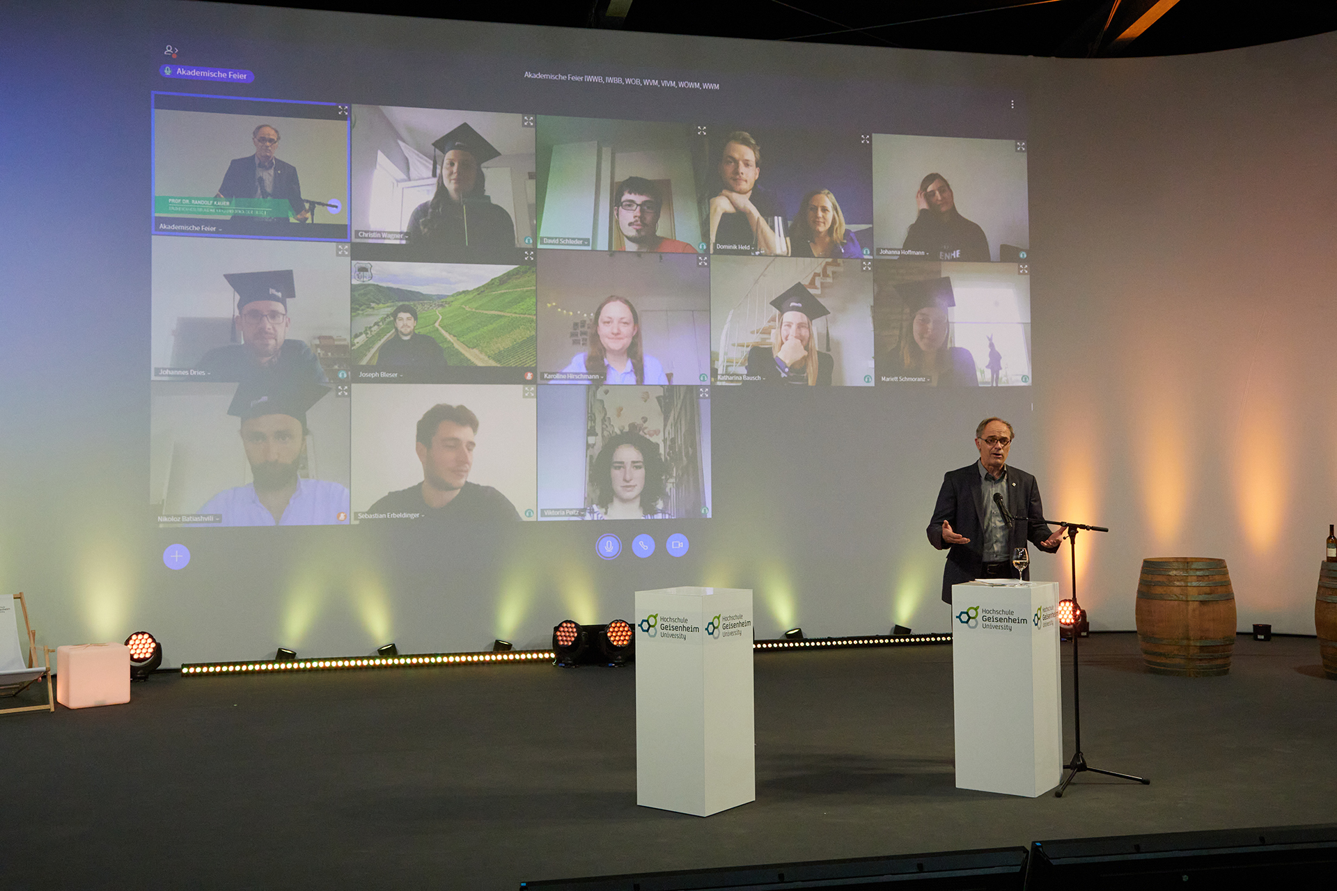 „Dieser Beitrag zu Ihrer Nervennahrung soll Sie rüsten für die Zeit, die nach der Abschlussfeier kommt. Ich bin sicher, sie wird genauso spannend wie die Zeit, die sie bis hierhin erlebt haben“, so Prof. Dr. Hans Reiner Schultz, Präsident der Hochschule Geisenheim, der in seiner Grußbotschaft auch auf die besondere Leistung der Absolventinnen und Absolventen im Corona-Jahr verwies.