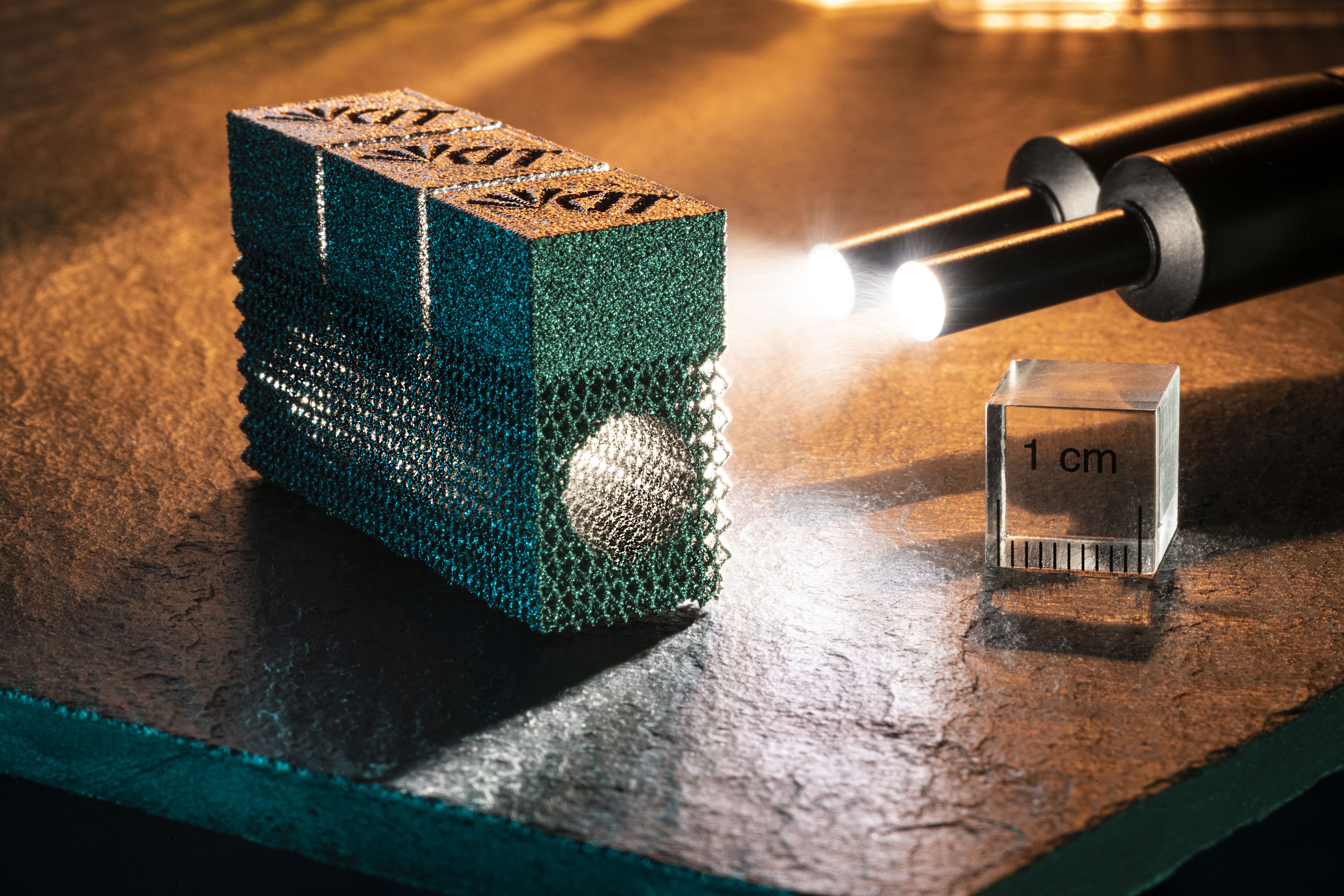 Das Metall Wolfram verfügt über Eigenschaften, die es als Werkstoff sehr attraktiv machen: Es ist sehr korrosionsbeständig, schwer wie Gold, als Wolframcarbid hart wie Diamant, und es hat mit 3.422 Grad Celsius den höchsten Schmelzpunkt aller Metalle. Allerdings ist dieses Metall bei Raumtemperatur sehr spröde. Aufgrund seiner Eigenschaften lässt sich Wolfram mit konventionellen Fertigungsmethoden nur schwer bearbeiten. Die Verarbeitung ist sehr kostspielig und zeitintensiv im Herstellungsprozess. Eine Alternative bietet der 3D-Druck, mit dem Bauteile so hergestellt werden können, dass sie kaum noch nachbearbeitet werden müssen. „Aktuell arbeiten wir an der additiven Fertigung von Bauteilen aus dem hochschmelzenden Metall Wolfram mit dem Verfahren Electron Beam Melting, kurz EBM, auch Elektronenstrahlschmelzen genannt“, erklärt Dr. Steffen Antusch vom Institut für Angewandte Materialien – Werkstoffkunde (IAM-WK) des KIT. Das Forschungsteam konnte den EBM-Prozess erfolgreich für Wolfram anpassen. Die eigens entwickelten Prozessparameter erlauben nun den 3D-Druck von Bauteilen aus Wolfram. „Die Einsatzgebiete dieses Metalls sind beindruckend vielseitig. Durch seine speziellen Eigenschaften ist es für Hochtemperaturanwendungen in Energie- und Lichttechnik sowie für die Raumfahrt und die Medizintechnik ideal geeignet und damit für die moderne Hightech-Industrie unverzichtbar“, so Alexander Klein vom IAM-WK.