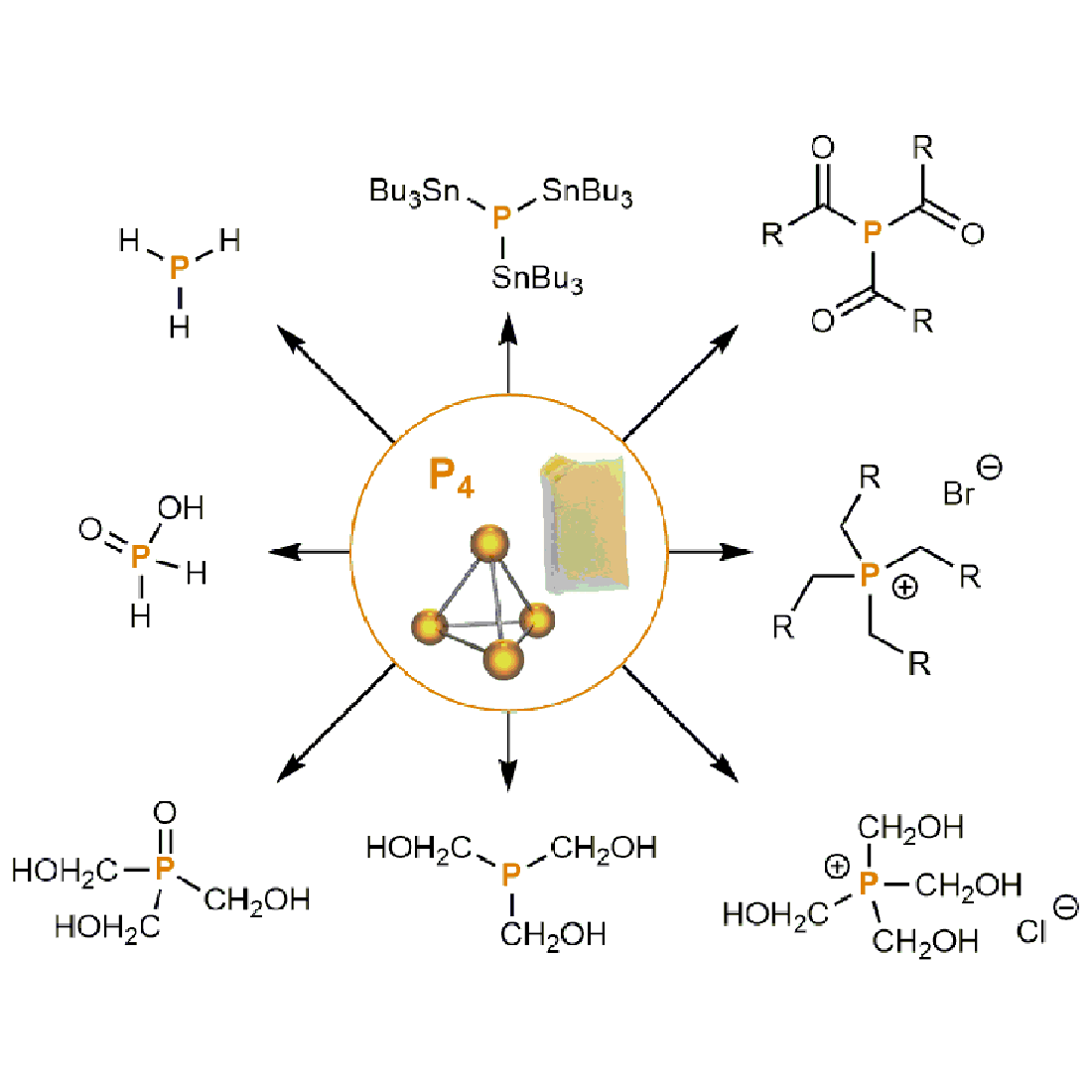 Im Gegensatz zu den bereits etablierten, mehrstufigen Verfahren ermöglicht diese neue Methode den Zugang zu einer strukturell vielfältigen Produktpalette in lediglich einem einzigen Reaktionsschritt. Zu den auf diese Weise hergestellten Produkten gehört das Phosphoniumsalz THPC (Tetrakis(hydroxymethyl) phosphoniumchlorid), das in der Industrie als Ausgangsmaterial für die Produktion von Flammschutzmitteln für Textilien verwendet wird. Weitere Ergebnisse sind z. B. die hypophosphorige Säure – die industriell als Reduktionsmittel und als synthetisches Zwischenprodukt für die Synthese von organischen Phosphorverbindungen dient – und die ebenfalls einfach zugängliche Verbindung Phosphan (PH3) – die technisch u.a. als Begasungsmittel und ebenfalls als synthetisches Zwischenprodukt für die Herstellung von organischen Phosphorverbindungen verwendet wird.