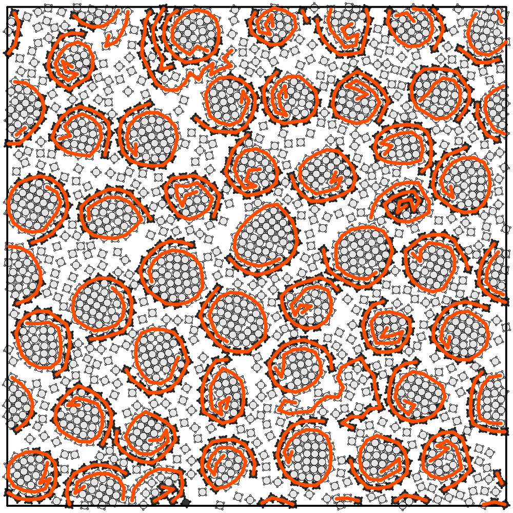 Führt man den Mikroroboterketten Energie zu und bringt sie in Bewegung, haben sie also die gleiche Wirkung wie Tenside. Deshalb zählen die Roboter zu den aktiven Tensiden, deren Aktivität und Wirkung man jederzeit beenden kann, indem Energiezufuhr durch den Vibrationsteller abgestellt wird. Dieses Phänomen konnte auch mit Hilfe umfangreicher Modellsimulationen gezeigt werden, die Physiker der FAU durchführten. „Die Simulationen erlauben es zum Beispiel, die Länge der Ketten oder das Verhältnis der Ketten zu einzelnen Robotern unabhängig voneinander zu variieren, um gezielt nach diesem neuen Zustand zu suchen”, erklärt Prof. Dr. Thorsten Pöschel vom Institut für Multiskalensimulation der FAU in Erlangen.