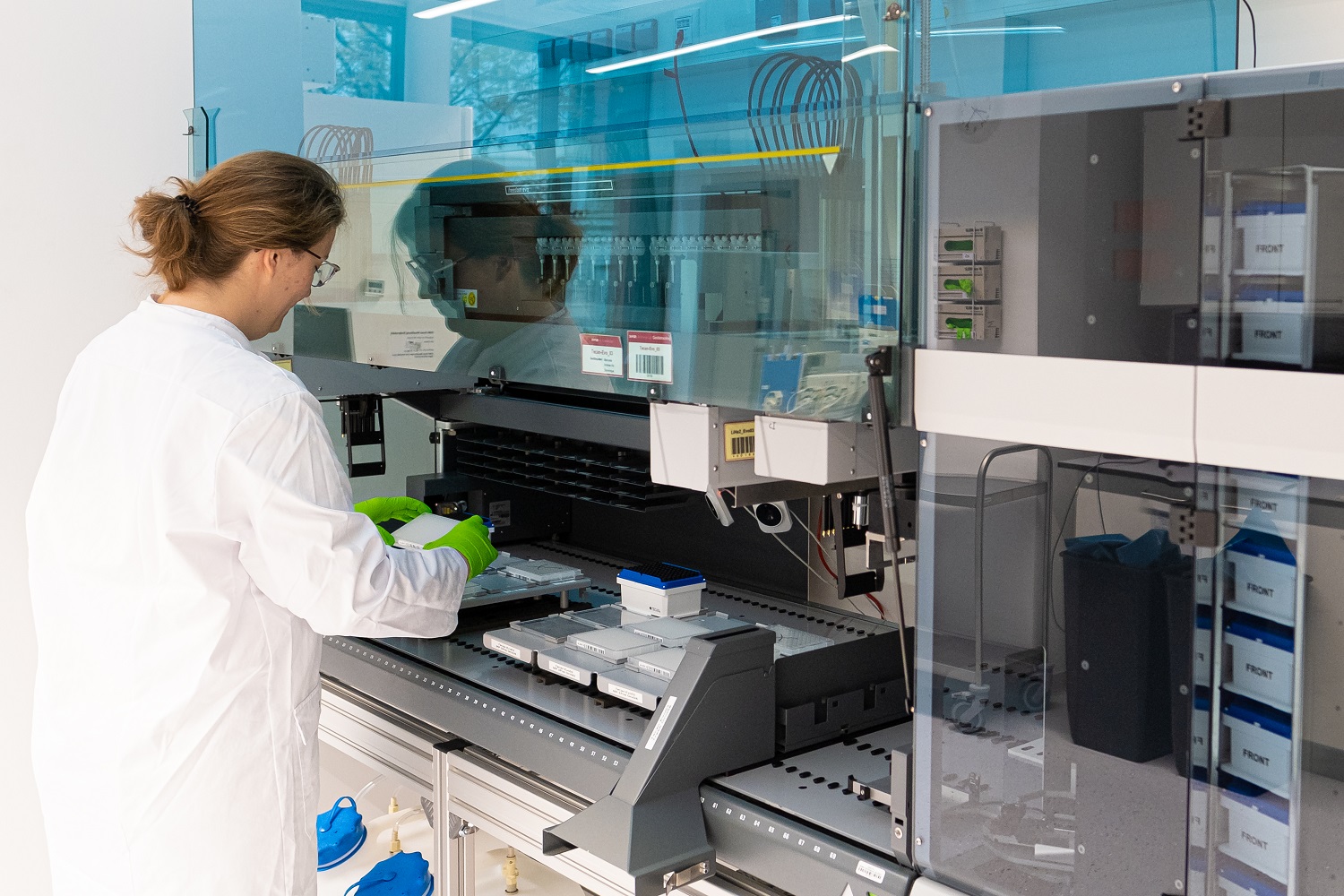 Deshalb legen die DKMS und das DKMS Life Science Lab besonders großen Wert auf eine hohe Typisierungsqualität aller registrierten Spender:innen. Aktuell umfasst das Typisierungsprofil zwölf HLA-Genorte mit 24 hochaufgelösten Gewebemerkmalen, außerdem weitere relevante Kriterien für die Spenderauswahl, zum Beispiel den CMV-Status, die Blutgruppe (ABO und RhD) und die Gruppe der KIR-Rezeptoren. 170 Labor-Mitarbeiter:innen bearbeiten mehr als eine Million Wangenabstrichproben neu registrierter Stammzellspender:innen pro Jahr. Möglich ist das mithilfe des Next Generation Sequencing (NGS), einer Technologie, die das DKMS Life Science Lab im Jahr 2013 als erstes Labor überhaupt für Typisierungen im Hochdurchsatz einsetzte.
