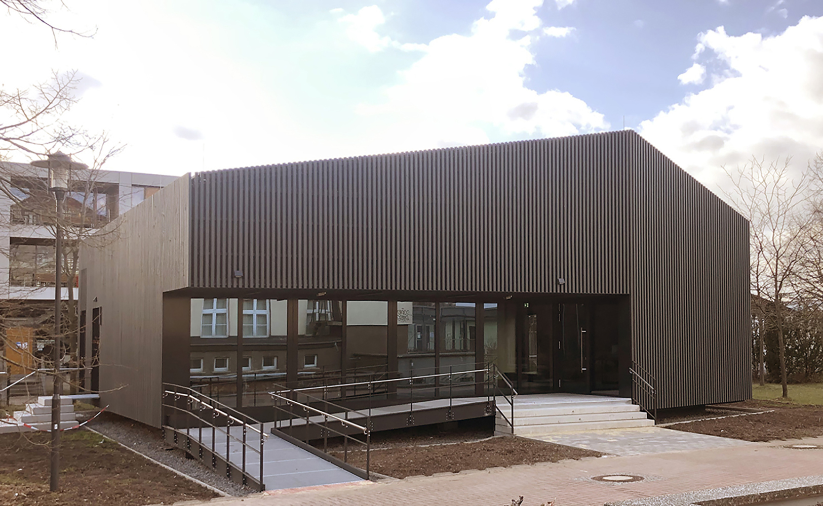 Das Projekt entwickelte das Büro Funken Architekten aus Erfurt weiter. Am 3. März 2020 hatten die Bauarbeiten zur Realisierung des Projektes dann am Standort Leipziger Straße begonnen. Die Gesamtkosten von 1,2 Mio. Euro erbrachte die Hochschule gänzlich aus Mitteln des eigenen Wirtschaftsplanes. Es entstand ein innovativer Hörsaal in Holzbauweise mit einer Photovoltaik-Anlage auf dem Dach, die die Luftheizung autark mit Energie versorgt. Eine barrierefreie Zugänglichkeit sowie hohe Ansprüche an die Raumakustik ermöglichen eine zeitgemäße Lehre. Das Gebäude wurde elementiert geplant und ausgeführt, sodass es auch an einen anderen Standort versetzt werden kann.
