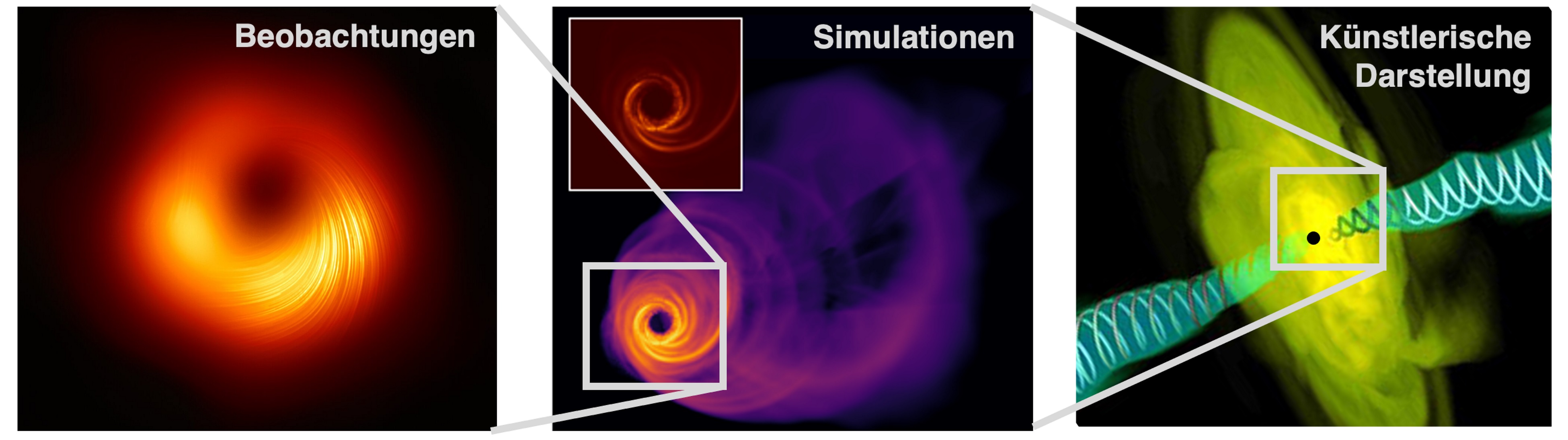 Ziel der neuen Methode ist, die Magnetfelder in unmittelbarer Nähe des Ereignishorizonts eines Schwarzen Lochs, also der Entfernung, ab welcher kein Licht mehr entweichen kann, präzise zu beobachten. „Diese Region ist von zentraler Bedeutung, denn sie spiegelt die fundamentale Physik eines Schwarzen Lochs wider. Erfahren wir mehr über diese Region, werden wir erklären können, wie die bereits beobachteten Plasmaausflüsse, auch Jets genannt, entstehen“ sagt Anton Zensus. „Verstehen wir, wie sich Magnetfelder in der unmittelbaren Umgebung eines Schwarzen Loches verhalten, dann haben wir eine Erklärung dafür gefunden, wie das Schwarze Loch diese Jets antreibt. Gleichzeitig werden wir einige alternative Erklärungen von Schwarzen Löchern ausschließen können.“