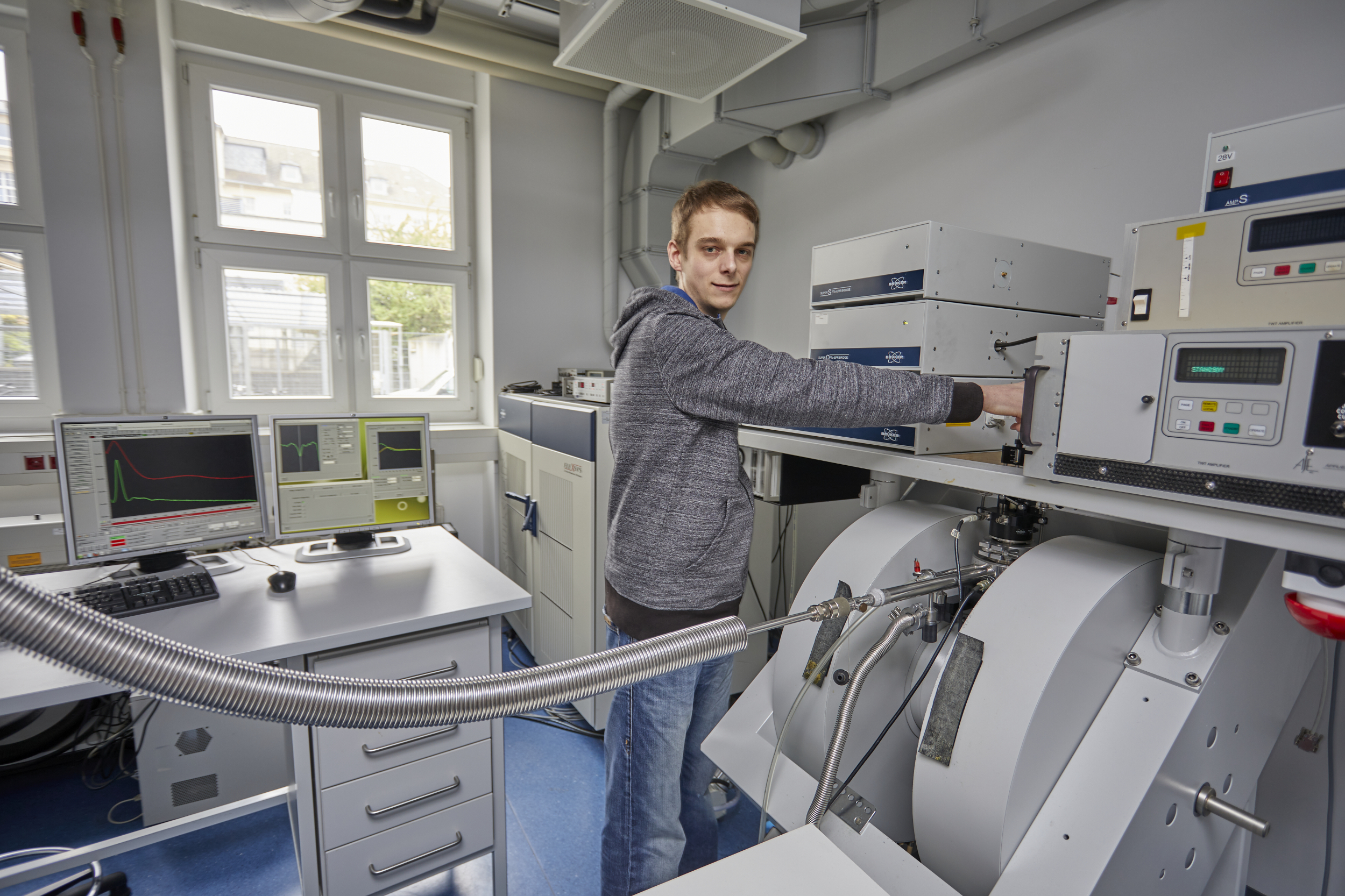 At the center of this procedure is a sophisticated method that allows samples to be mixed and frozen very quickly at a precise point in time. The technique, called "microsecond freeze hyperquenching" (abbreviated MHQ), was originally developed at Delft University, but later fell into disuse. It was rediscovered and decisively refined by Kaupp's group.