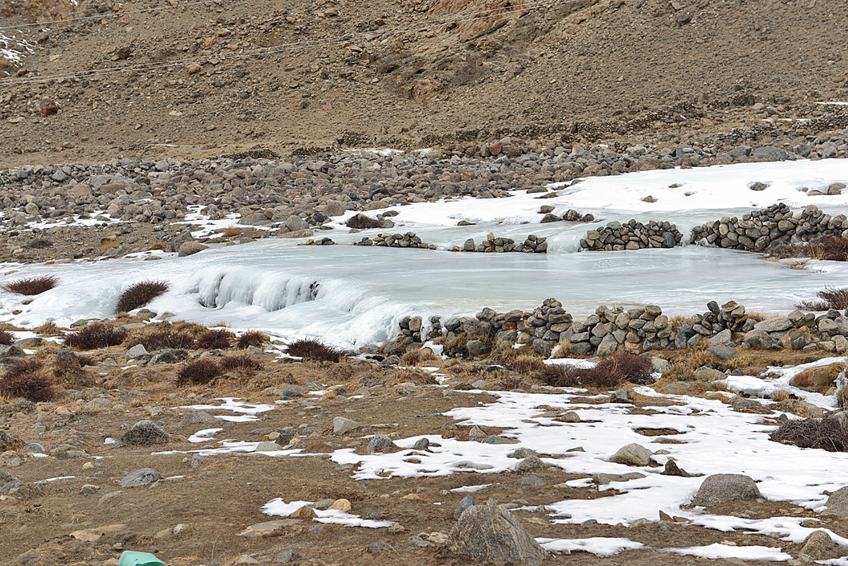 In den trockenen Himalaya-Regionen Indiens und Pakistans spielt Schmelzwasser aus Schnee und Gletschern eine essentielle Rolle für die Bewässerung der dortigen Landwirtschaft und die Energiegewinnung mithilfe von Wasserkraft. Bisher wenig Beachtung fand in diesem Zusammenhang das Aufeis. Dabei handelt es sich um dünne Eisschichten, die durch sukzessives Gefrieren von Wasser entstehen und mehrere Meter mächtig werden können. Dieses Phänomen tritt saisonal auf, wenn Wasser an Quellhorizonten austritt oder entlang von Rinnsalen und Bächen im Zuge häufiger Frostwechsel gefriert und wieder auftaut. „Vereinzelt wird dieser Prozess durch das Errichten von Steinmauern gezielt verstärkt. Diese künstlich angelegten Reservoire werden in einigen Seitentälern des oberen Indus genutzt, um die saisonal auftretende Wasserknappheit im Frühjahr zu überbrücken. Das genaue Vorkommen, die Größe und die Anzahl der natürlich vorkommenden Aufeis-Felder war bislang jedoch unbekannt“, betont Prof. Dr. Marcus Nüsser vom Südasien-Institut der Ruperto Carola.