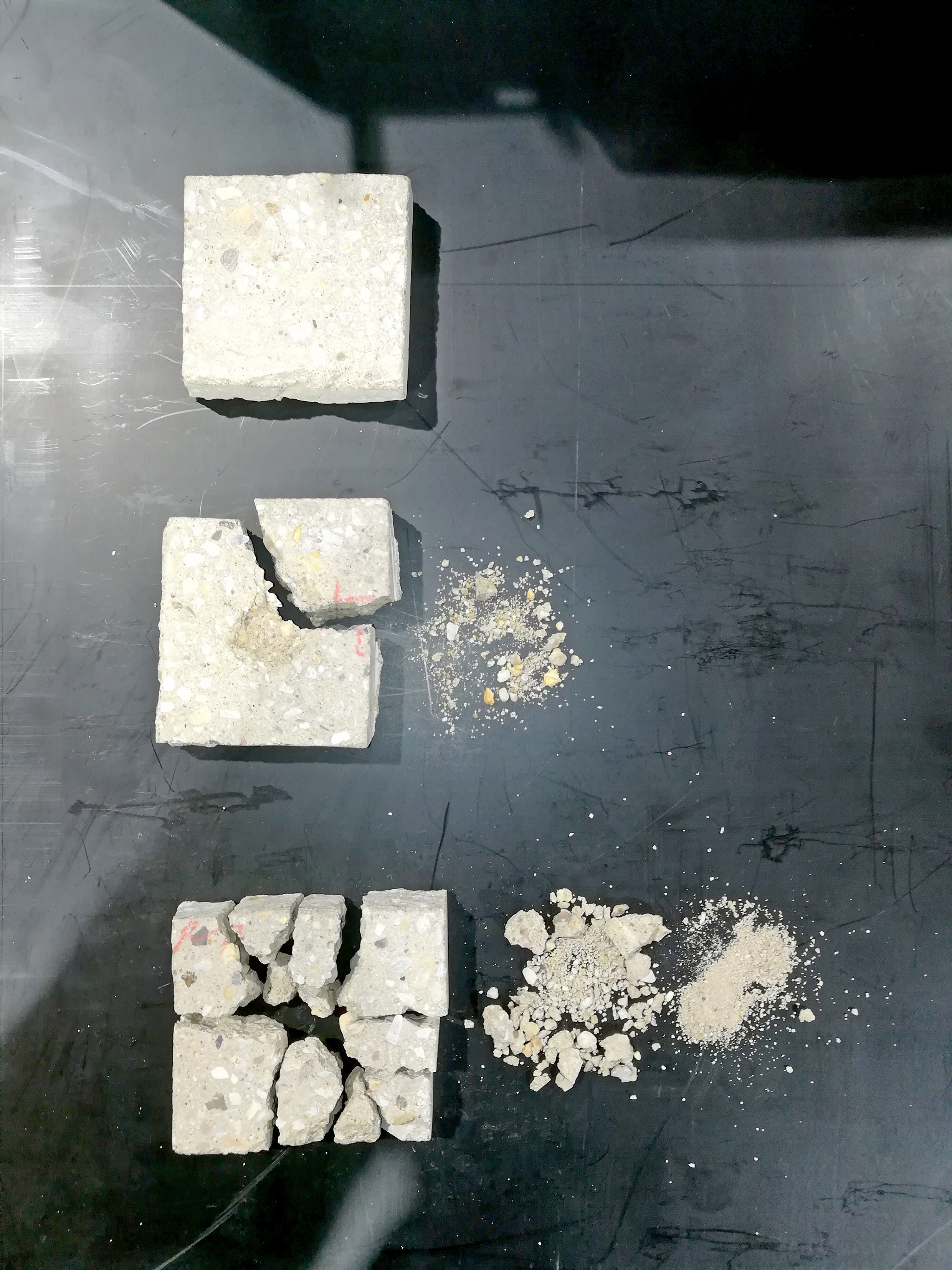 Grund dafür sei die fehlende Sortenreinheit beim mechanischen Brechen: „Für die Festigkeiten von Beton sind die Faktoren der Korndruckfestigkeit und Korngeometrie wesentlich. Durch das mechanische Brechen werden die einzelnen Bestandteile des Betons nicht sortenrein getrennt. Die Bruchflächen laufen oft durchs Gesteinskorn durch. Hinsichtlich der Eigenschaften der rezyklierten Gesteinskörnungen ist eine möglichst vollständige Trennung zwischen der ursprünglichen, natürlichen Gesteinskörnung und dem anhaftenden Zementstein anzustreben. Gerade der anhaftende Zementstein ist bei der Wiederverwertung der Gesteinskörnung im Beton das schwache Bindeglied. Durch die Anhaftung des Zementsteines am Gesteinskörn werden Festigkeit, Wasseraufnahme, Rissneigung, Druck- und Zugfestigkeit, Elastizitätsmodul, Kriech- und Schwindverhalten, Schadstoffaufnahmekapazität und Porosität in einem solchen Mehrstoffsystem stark und nachteilig beeinflusst“, erklärt Peter Sudermann.