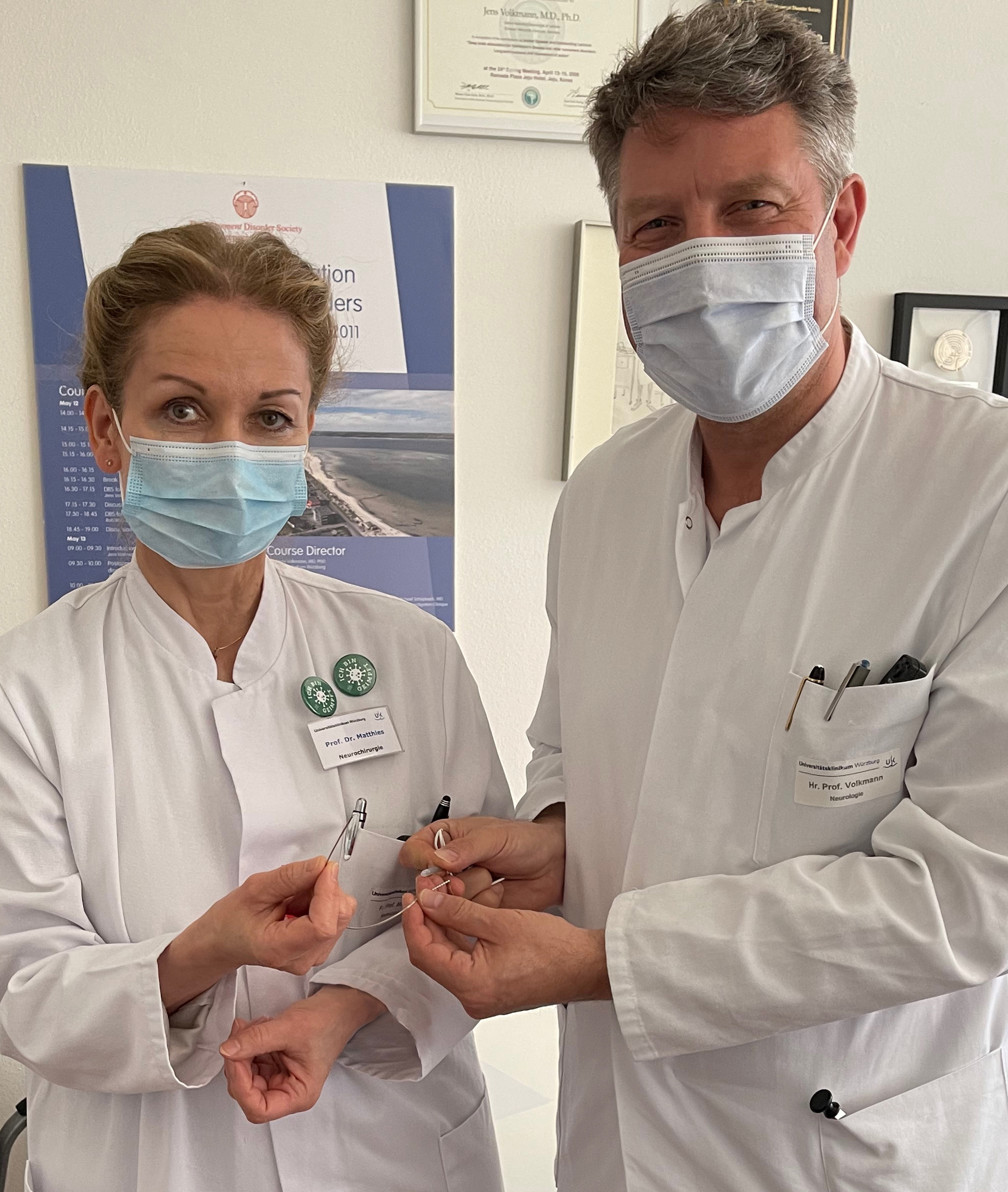 An der Neurochirurgischen Klinik des Uniklinikums Würzburg wurden im März dieses Jahres die weltweit ersten beiden Parkinson-Patienten mit einem neuen Neurostimulatorsystem versorgt. Als Besonderheit können dessen Elektroden nicht nur gezielt die fraglichen Gehirnbereiche stimulieren, sondern auch kontinuierlich Gehirnströme erfassen.