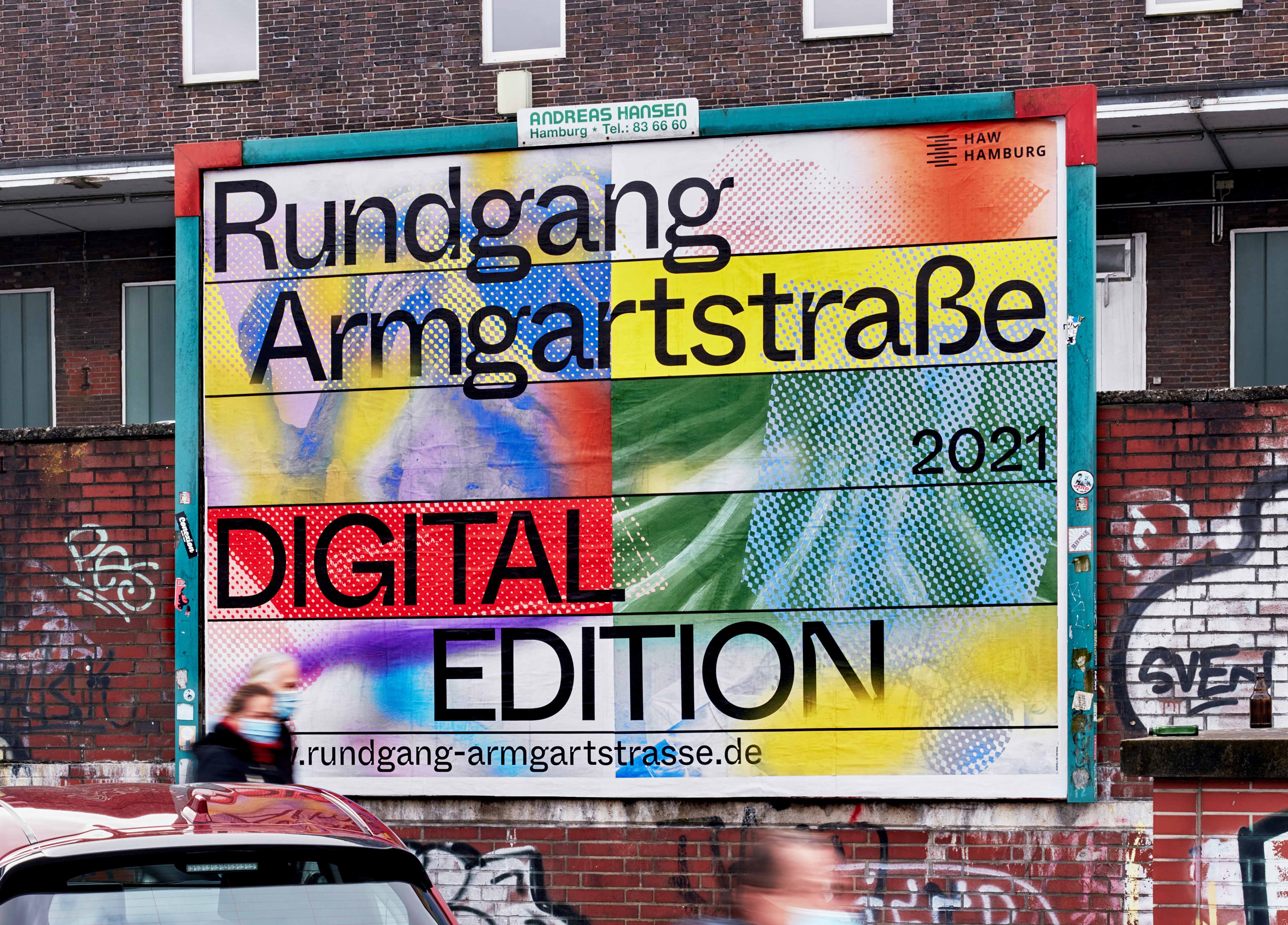 Vielleicht ist es der einen oder dem anderen schon aufgefallen: Seit einiger Zeit hängen die auffälligen bunten Plakate an Hamburger Litfaßsäulen. Die Plakate werben für die diesjährige Jahresausstellung der Armgartstraße, die – wie kann es auch anders sein – in diesem Jahr rein digital stattfindet. Auf einer Website werden über 70 Abschlussarbeiten aus dem Department Design der HAM Hamburg gezeigt.