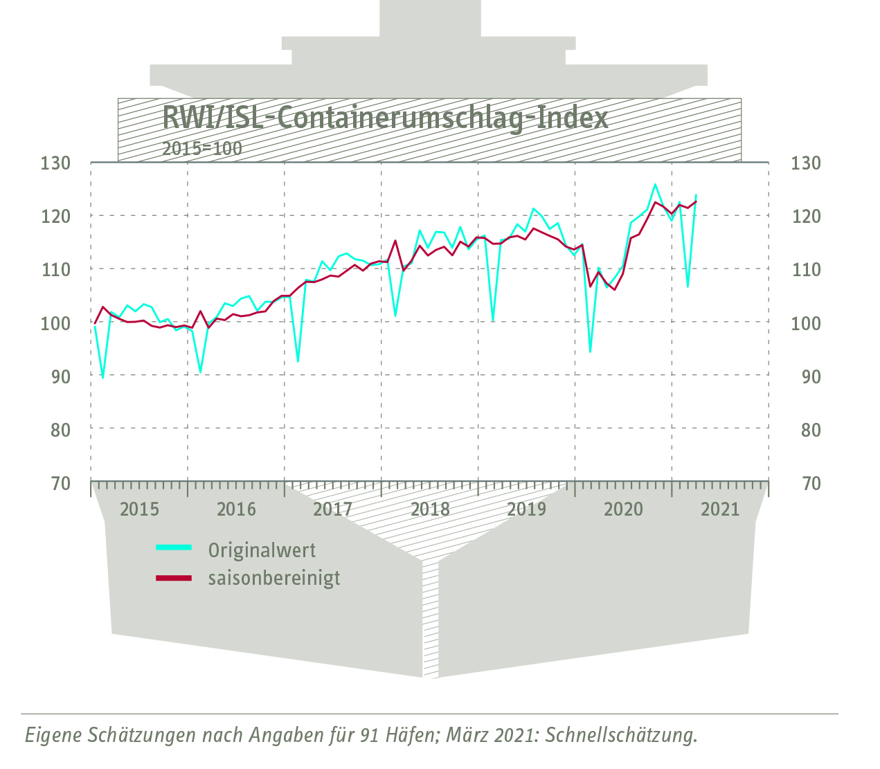 • Der RWI/ISL-Containerumschlag-Index für April 2021 wird am 27. Mai 2021 veröffentlicht.