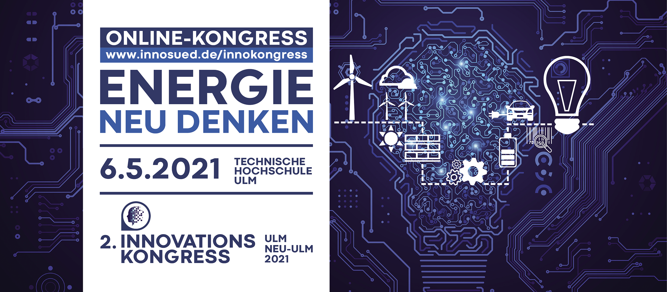 „Energie neu denken“: Unter diesem Motto stand der 2. Innovationskongress Ulm/Neu-Ulm am 6. Mai 2021. Die Technische Hochschule Ulm, die Innovationsregion Ulm und das Verbundprojekt InnoSÜD haben den Innovationskongress 2019 als Forum ins Leben gerufen, in dem sich Vertreter:innen von Wissenschaft, Wirtschaft und Politik aus der Region über Zukunftsthemen austauschen können. Coronabedingt fand der Kongress mit gut 350 angemeldeten Teilnehmenden, fünf Keynote- und zehn Fachvorträgen digital statt.