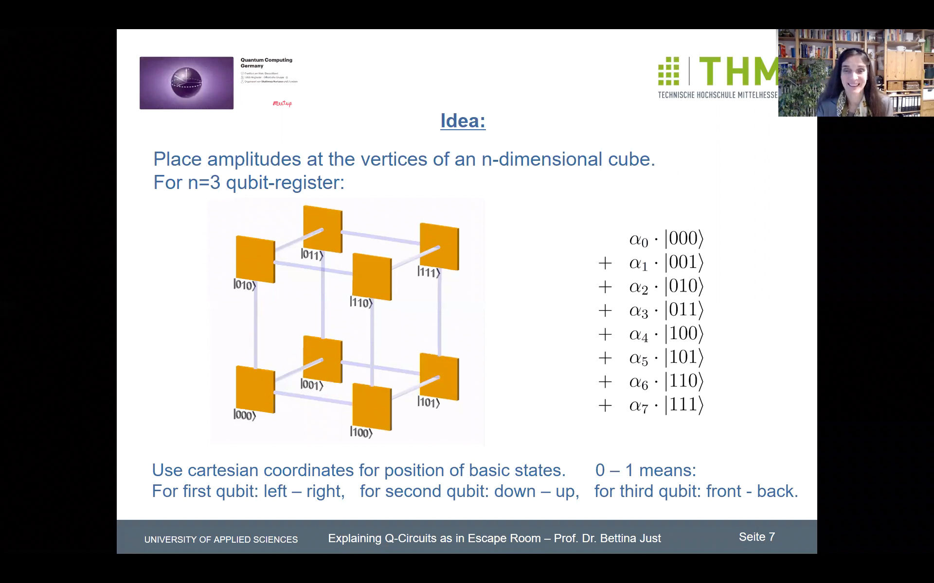 Im zweiten Teil wendet sie sich aus der Sicht der Informatikerin den Quantenalgorithmen zu, besonders dem Algorithmus zur Teleportation, einer Aufgabe, die klassische Computer nicht lösen können. Quantencomputer ermöglichen Teleportation, weil sie über den Mechanismus der Quantenverschränkung verfügen. Zur Erklärung der Funktionsweise bedient sich die Verfasserin einer graphischen Methode, die an der THM entwickelt und von ihr bereits in nationalen wie internationalen Fachkreisen vorgestellt wurde. So braucht man keine Formeln zu verstehen. Als Demonstration genügen kleine hin- und herwandernde Quadrate, die an den acht Ecken eines Würfels befestigt sind. Mit diesem visuellen Modell veranschaulicht Bettina Just, dass Quanten-Algorithmen, um ihren Zweck zu erfüllen, deutlich weniger Operationen ausführen müssen als herkömmliche Algorithmen. Diese Leistungsfähigkeit macht sie so interessant für IT-Anwendungen, bei denen es darauf ankommt, komplexe Sachverhalte und große Datenmengen zu bearbeiten.