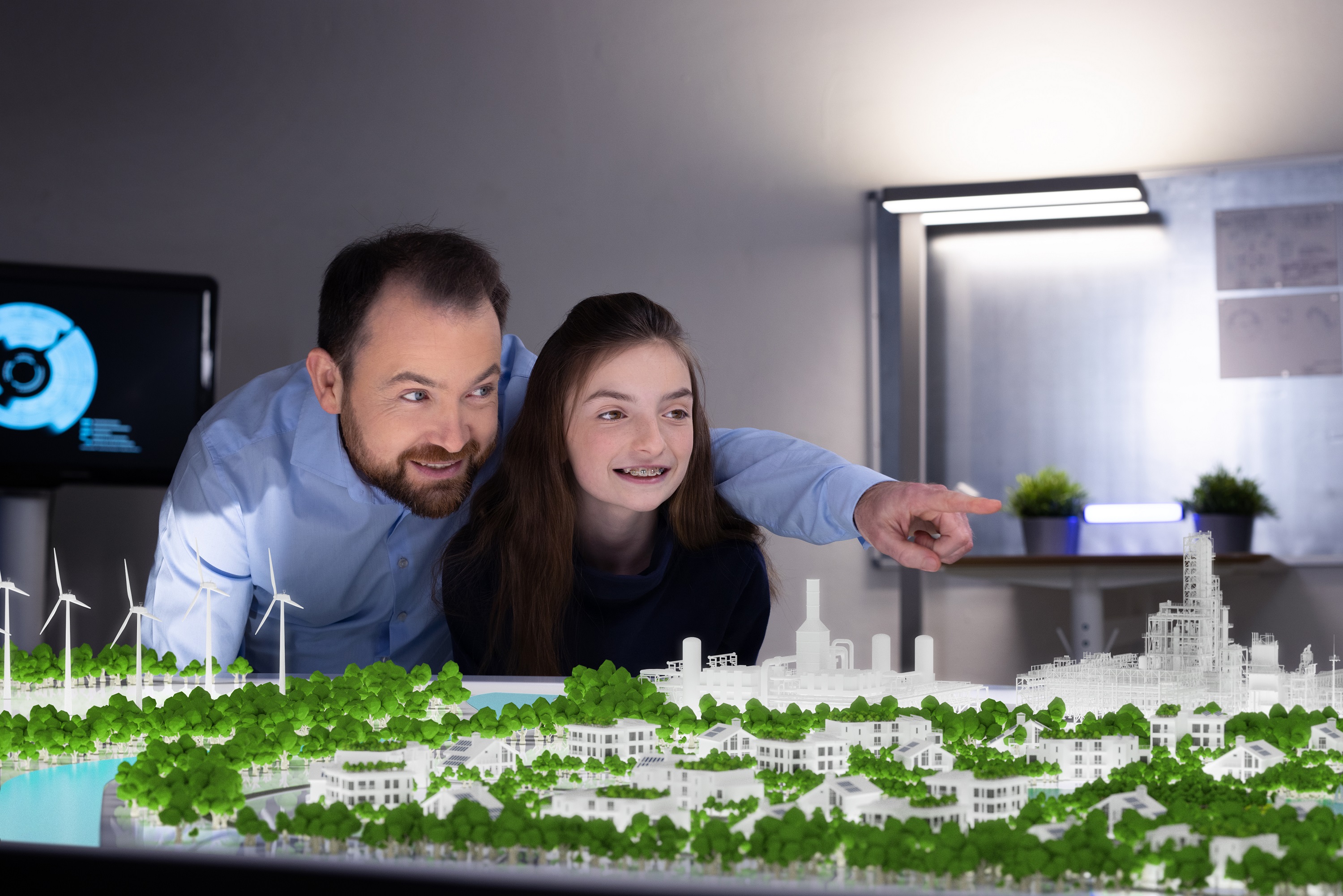 Eines wird in der filmischen Zukunftsvision deutlich: Ohne die energieintensive Industrie ist das ehrgeizige Ziel der Klimaneutralität nicht zu erreichen. In Deutschlands Industrieland Nummer 1 liegt ihr Anteil an den Treibhausgasemissionen derzeit bei rund 23 Prozent. Gleichzeitig sind klimafreundliche Technologie- und Prozessinnovationen aus der Industrie entscheidend, um auch in anderen Bereichen, wie Verkehr, Energie und Bau den Klimaschutz voranzutreiben. Doch die Unternehmen stehen vor der Herausforderung, hohe Investitionen zu tätigen, ohne ihre Wettbewerbsfähigkeit zu verlieren. Hierfür sind sie auf innovative Strategien und Lösungen und geeignete Rahmenbedingungen angewiesen.