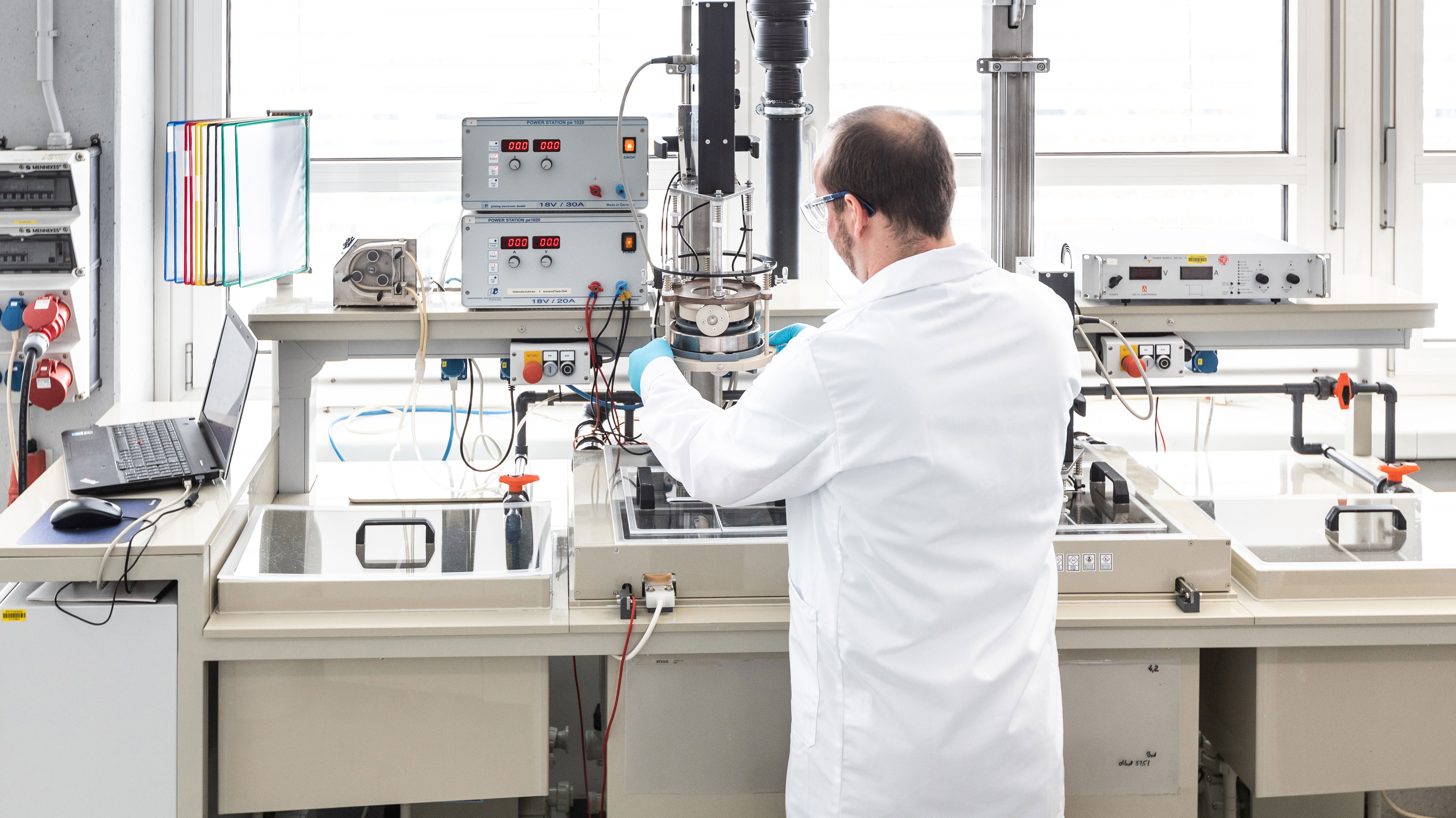 Galvanisieren muss man bei der Herstellung vieler Alltagsgegenstände: vom Reißverschluss über den Wasserhahn bis zum Brillengestell. Dabei wird eine hauchdünne Schicht eines Metalls aufgetragen, um der Oberfläche eine spezielle Eigenschaft zu verleihen. Eine Schraube wird durch das Verzinken rostbeständig, ein Maschinenteilverschleißt dank einer Lage Chrom langsamer und ein Brillengestell sieht mit einer Beschichtung aus Edelmetall wertiger aus. Um Strom zu sparen und Ressourcen zu schonen, sollten diese Schichten dabei nicht dicker als nötig sein. Oft genügen schon wenige Mikrometer, also Tausendstel Millimeter – ein menschliches Haar ist mit 50 bis 80 Mikrometer deutlich dicker.