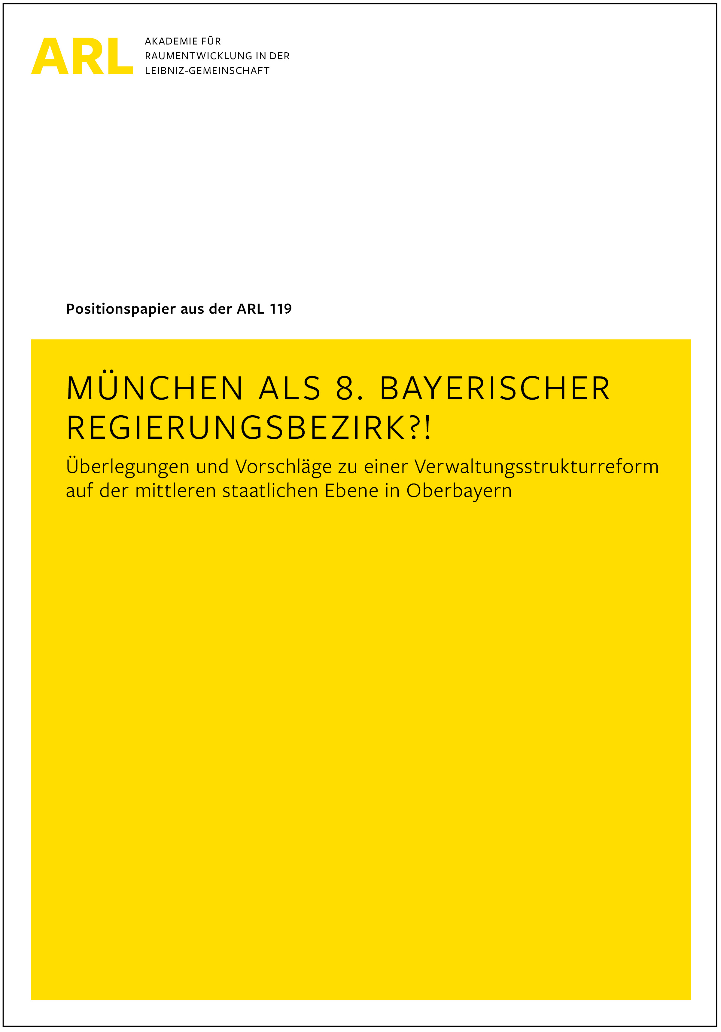 Im Hinblick auf die stockenden Pläne der Bayerischen Staatsregierung um die Errichtung eines "Regierungsbezirks München“ und die aktuelle Diskussion um eine Verlagerung von Behörden aus München in die ländlichen Räume informiert die ARL - Akademie für Raumentwicklung in der Leibniz-Gemeinschaft erneut über das kostenfrei zugängliche Positionspapier 119. Das Positionspapier wurde von einer Ad-hoc-Arbeitsgruppe der Landesarbeitsgemeinschaft Bayern der ARL 2020/21 erarbeitet und vertieft die aktuellen Diskussionen zu diesem Thema aus raumwissenschaftlicher Sicht: https://shop.arl-net.de/media/direct/pdf/pospapier/pospapier_119.pdf.