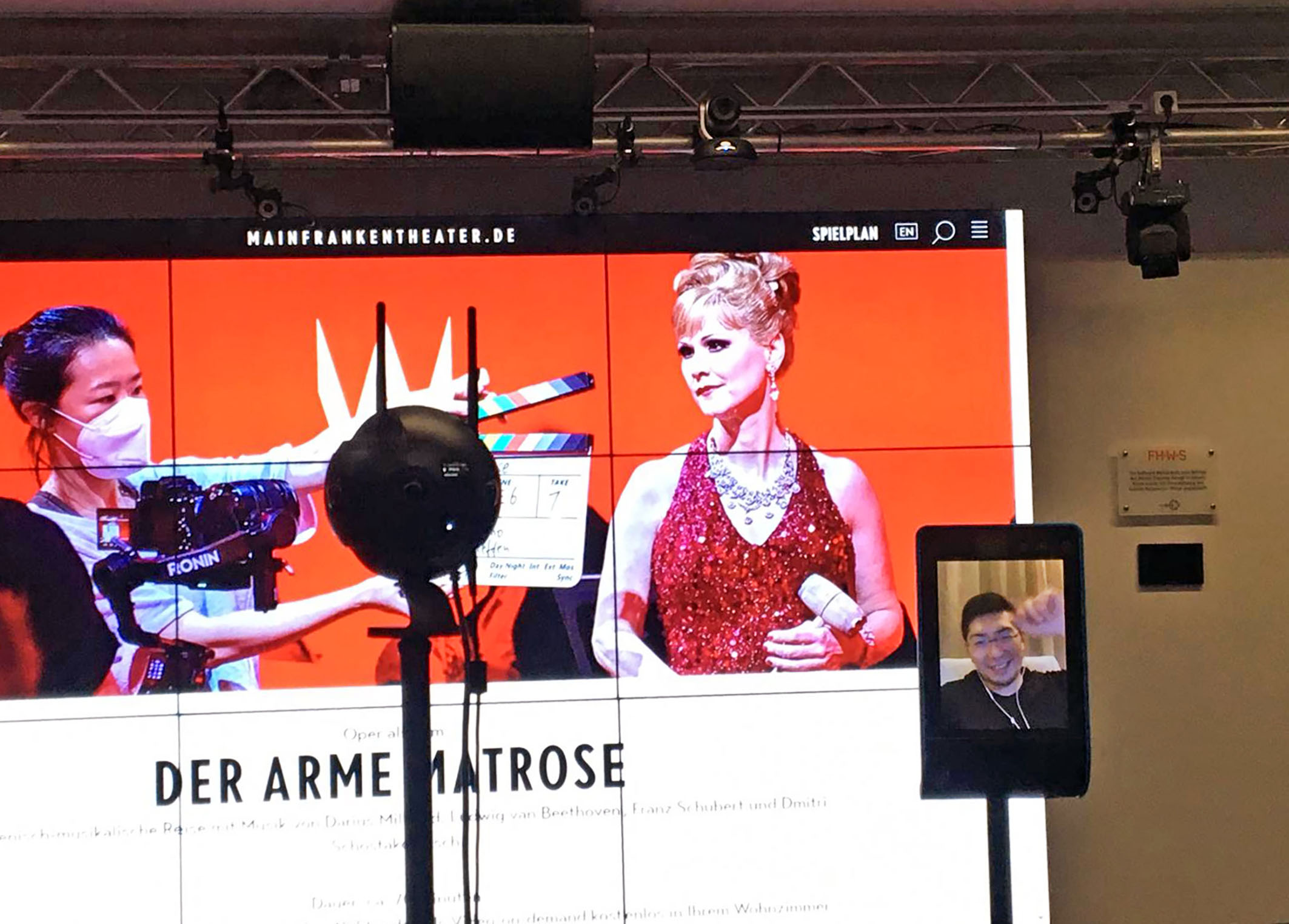 Mit den Mitteln der Kunst und der Technologie in Zeiten der Pandemie arbeiten: Es geht darum, eine Erzählung zu präsentieren, die mehr werden soll als nur eine Watch-Party, bei der Freunde und Familie eine Darbietung synchron am Monitor verfolgen. Das Mainfranken Theater Würzburg lud vom 14. bis 16. Mai mit einem Filmprojekt zur szenisch-musikalischen Reise der Kurzoper „Der arme Matrose" von Darius Milhaud als Video-on-demand ein. Im Rahmen des Forschungsprojekts „Theater 3.0“ sorgte die Forschungsgruppe der Hochschule für angewandte Wissenschaften Würzburg-Schweinfurt parallel für einen digitalen Premierenabend. Dies wurde mit modernsten Technologien und neuartigen Telepräsenz-Medien erreicht. Mittels einer 360° Kamera konnten die Zuschauenden ihre eigene Perspektive wählen und über einen Double Robot wurde der Regisseur Sugao live aus Hongkong zugeschaltet. Das Konzept kam an: mit 1.900 Videoaufrufen der filmischen Oper aus insgesamt neun Ländern weltweit sowie über zweihundert Beteiligten an den Vor- und Nachgesprächen mit Akteurinnen und Akteuren aus Theater und Hochschule.