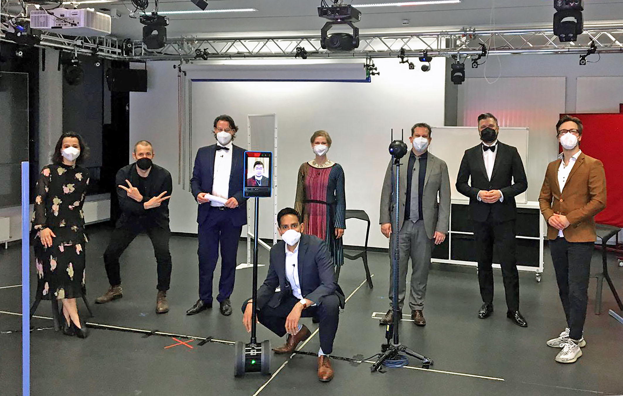 Die Idee für die begleitende Veranstaltung wurde erst 14 Tage vorher entwickelt. Dabei wurde auch beschlossen, den Regisseur aus Hongkong zur Premiere in Würzburg dazu zuschalten. Hierzu konnte auf bereits gewonnene Erfahrungen zurückgegriffen werden: Einen Vortrag zur Mensch-Roboter-Interaktion auf dem „1st International Roboticist Forum“ in Schweinfurt zu halten trotz Aufenthalt an einem anderen Ort – kein Problem dank digitaler Technologie. Müller weiter: „Wir planen, diese Techniken für hybride Lehrveranstaltungen einzusetzen, um beispielsweise externe Vortragende in den Seminarraum zu holen oder das Seminar live z.B. zu einem externen Projekt zu bringen.“ Prof. Dr. Müßig konnte auf diese Weise eine Projektarbeit mit Studierenden aus dem kanadischen Toronto realisieren: „Hier wurde sehr schnell deutlich, dass der Double Robot für kollaboratives Arbeiten in internationalen Teams sehr gut geeignet ist.“