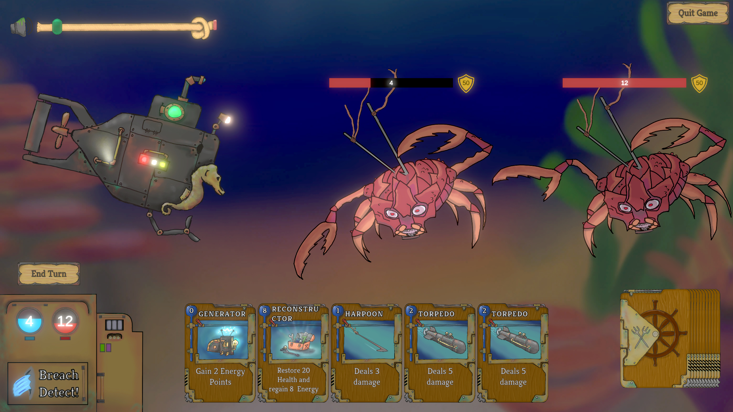 Innerhalb von nur 72 Stunden ein Computerspiel zu einem vorgegebenen Thema entwickeln – klingt eigentlich unmöglich. In dem offiziellen Game Jam „Ludum Dare“, das mittlerweile zum 48. Mal stattfand, ist es dem Team der Hochschule Koblenz aber erneut gelungen: Das Team vom Remagener RheinAhrCampus entwickelte zum Thema des Wettbewerbs "deeper & deeper" das virtuelle Kartenspiel "Hadal Depth", in dem man mit einem U-Boot in immer tieferen Meeresebenen gegen Seekreaturen bestehen muss. Insgesamt wurden über 3800 Spiele eingereicht und von den Teilnehmenden untereinander in verschiedenen Kategorien bewertet. Das Remagener Team schaffte es in der Kategorie „Fun“ unter die Top 12.