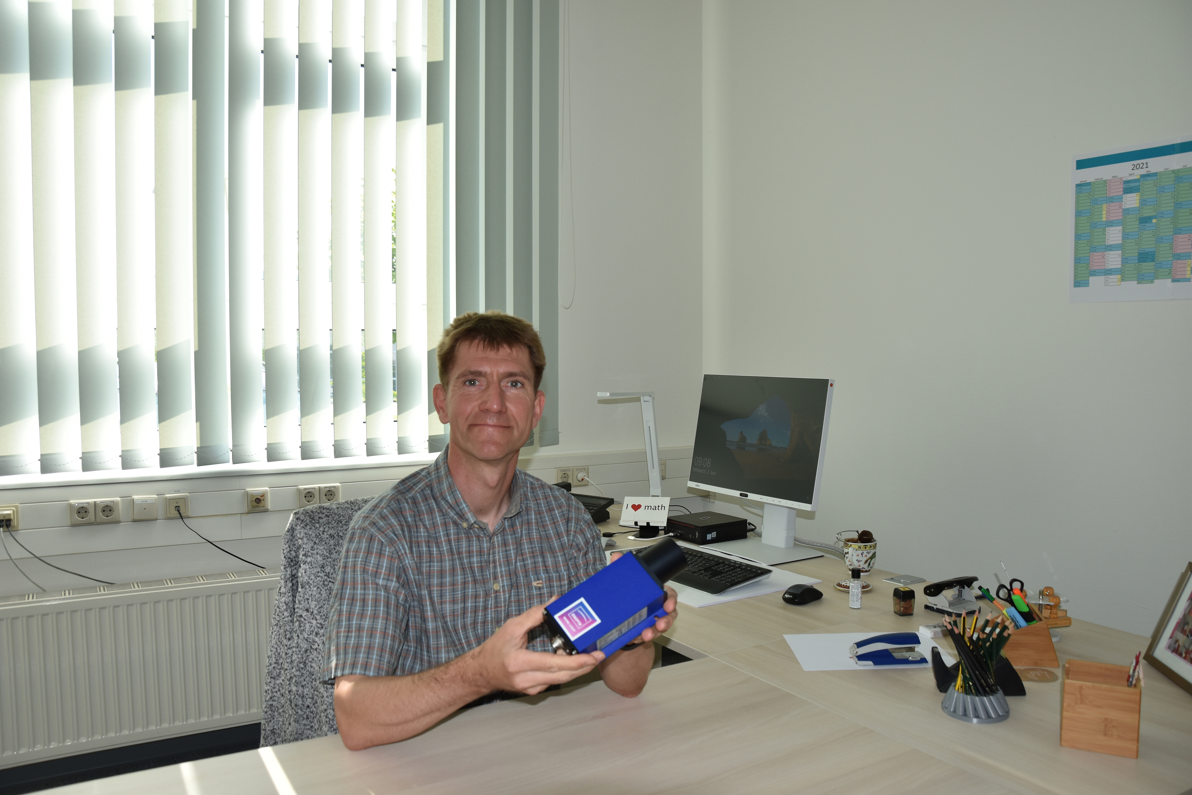 Früher selbst Entwickler solcher Geräte bei der Jenoptik, freut sich der Mathematikprofessor sehr über diese Spende: „Damit lassen sich verschiedene Projekte am Fachbereich realisieren, unter anderem das körperliche Fühlbarmachen des mathematischen Funktionsbegriffes“.