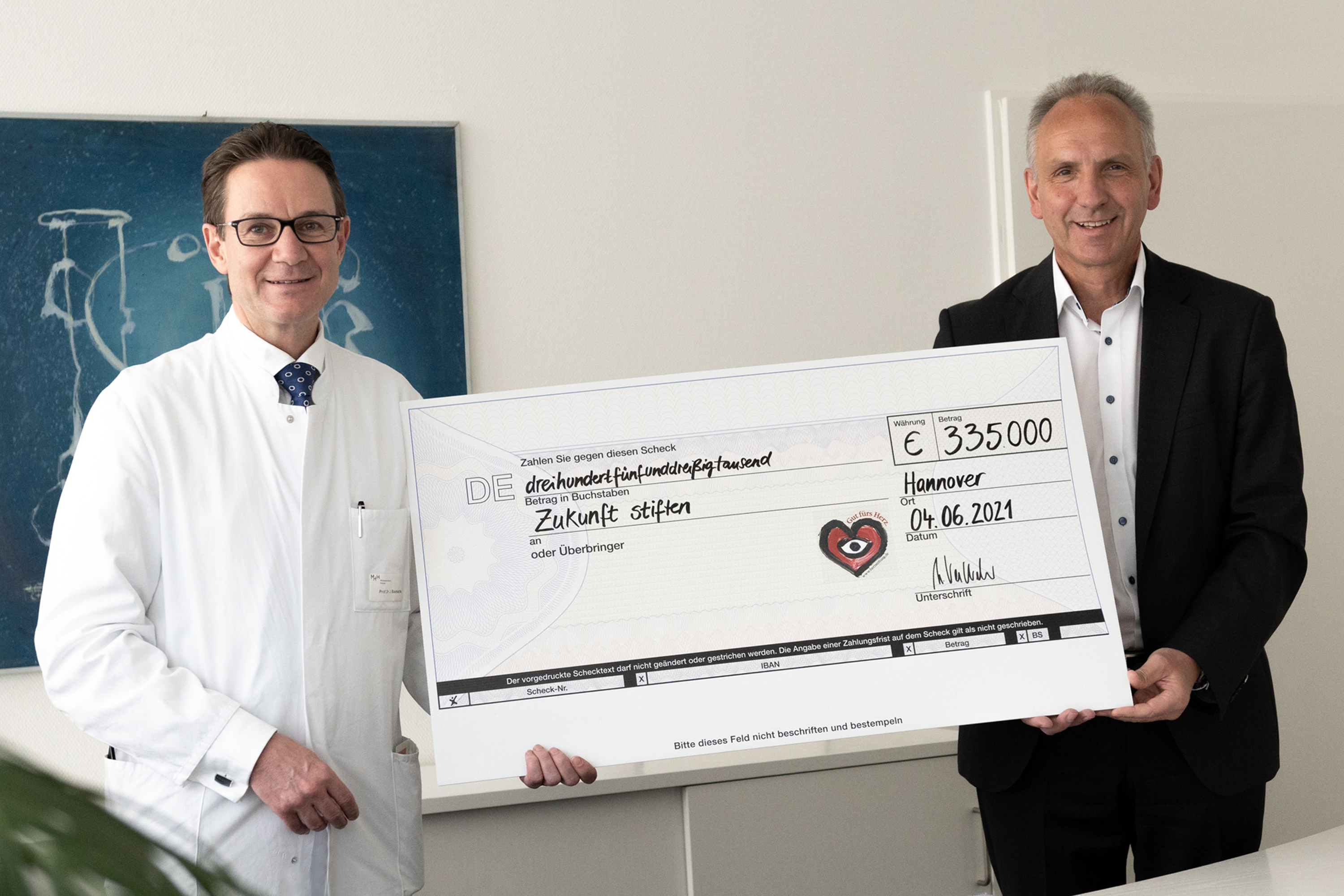 Für die symbolische Scheckübergabe kamen Vertreterinnen und Vertreter beider Organisationen heute an der MHH zusammen. „Eine Zuwendung dieser Größenordnung erhalten wir natürlich nicht alle Tage, das ist schon etwas Besonderes“, sagte Professor Dr. Johann Bauersachs, Direktor der MHH-Klinik für Kardiologie und Angiologie und Vorsitzender des Kuratoriums der Stiftung der MHH-Kardiologie „Zukunft stiften“. „Auch den Gedanken, das Engagement für eine bestimmte Sache, über das eigene Leben hinaus zu verfolgen, wissen wir sehr zu schätzen.“