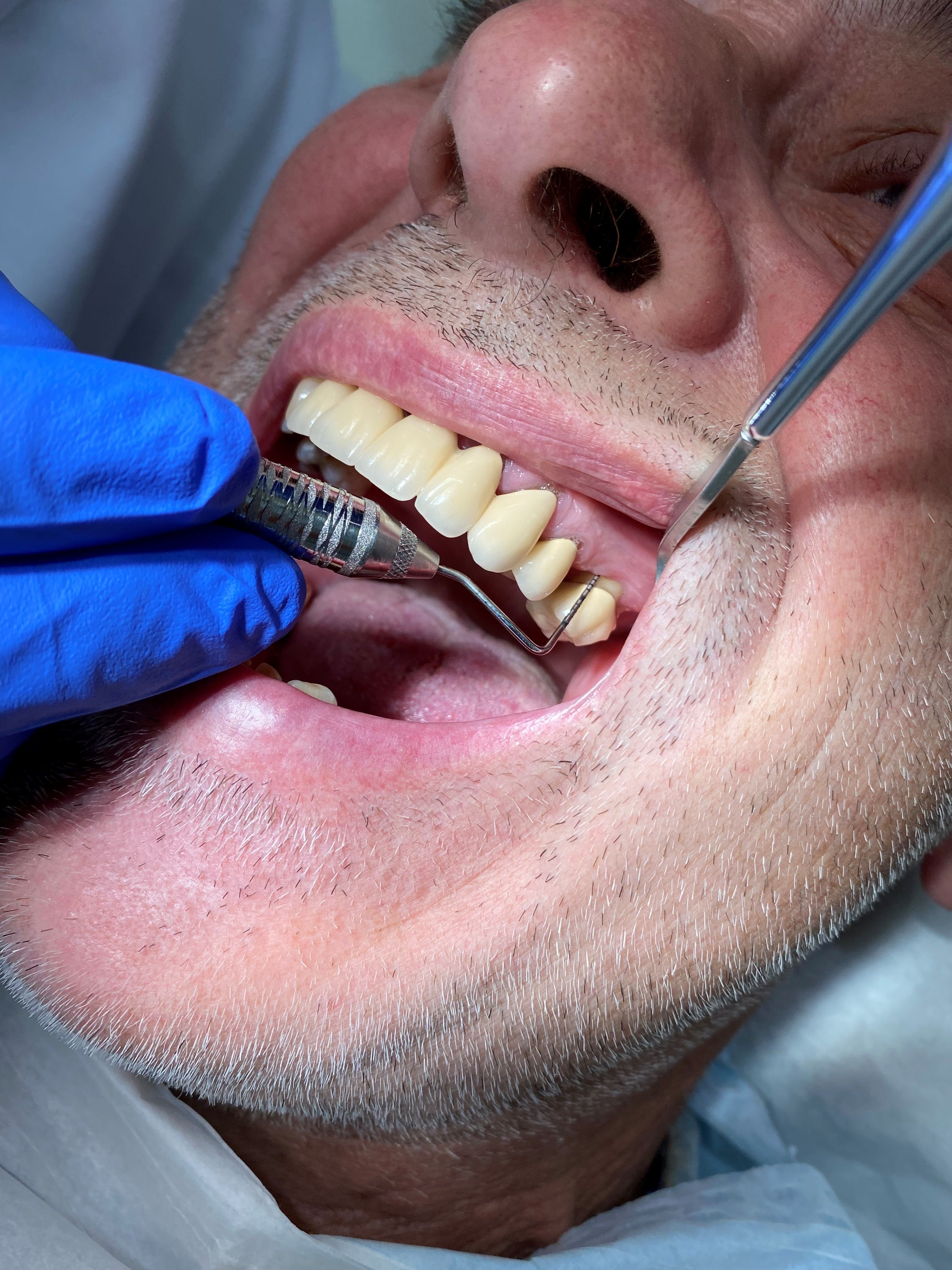 Die Kontrolle der Zahnfleischtaschen (bis 3 mm gesund) mit einer speziellen parodontalen Sonde. Diese Kontrolle kann bei gesetzlich versicherten Patienten alle zwei Jahre vorgenommen werden.