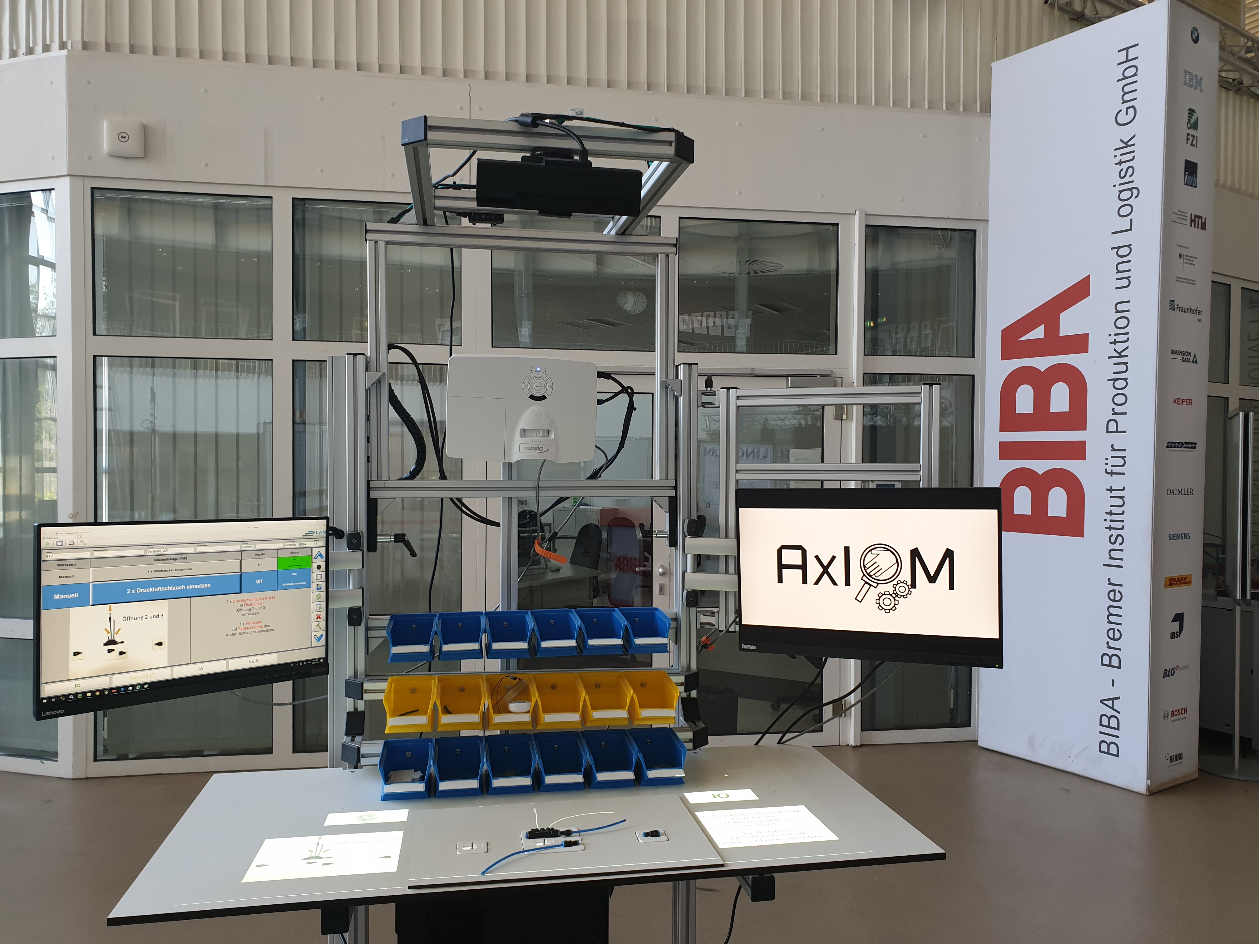 Das Kooperationsprojekt „Gamifiziertes KI-Assistenzsystem zur Unterstützung des manuellen Montageprozesses“ (AxIoM) unter Leitung des BIBA lief 22 Monate. Als Entwicklungspartner war Armbruster Engineering, ein Bremer Spezialist für Montageassistenzsysteme, beteiligt. Das Vorhaben wurde über die Bremer Aufbaubank (BAB) mit Mitteln aus dem Europäischen Fonds für regionale Entwicklung (EFRE) gefördert und begleitet. Entstanden ist der Prototyp eines KI-gestützten Assistenzsystems für eine Montagestation in der manuellen Produktion wie zum Beispiel bei der Herstellung von Kleinserien.