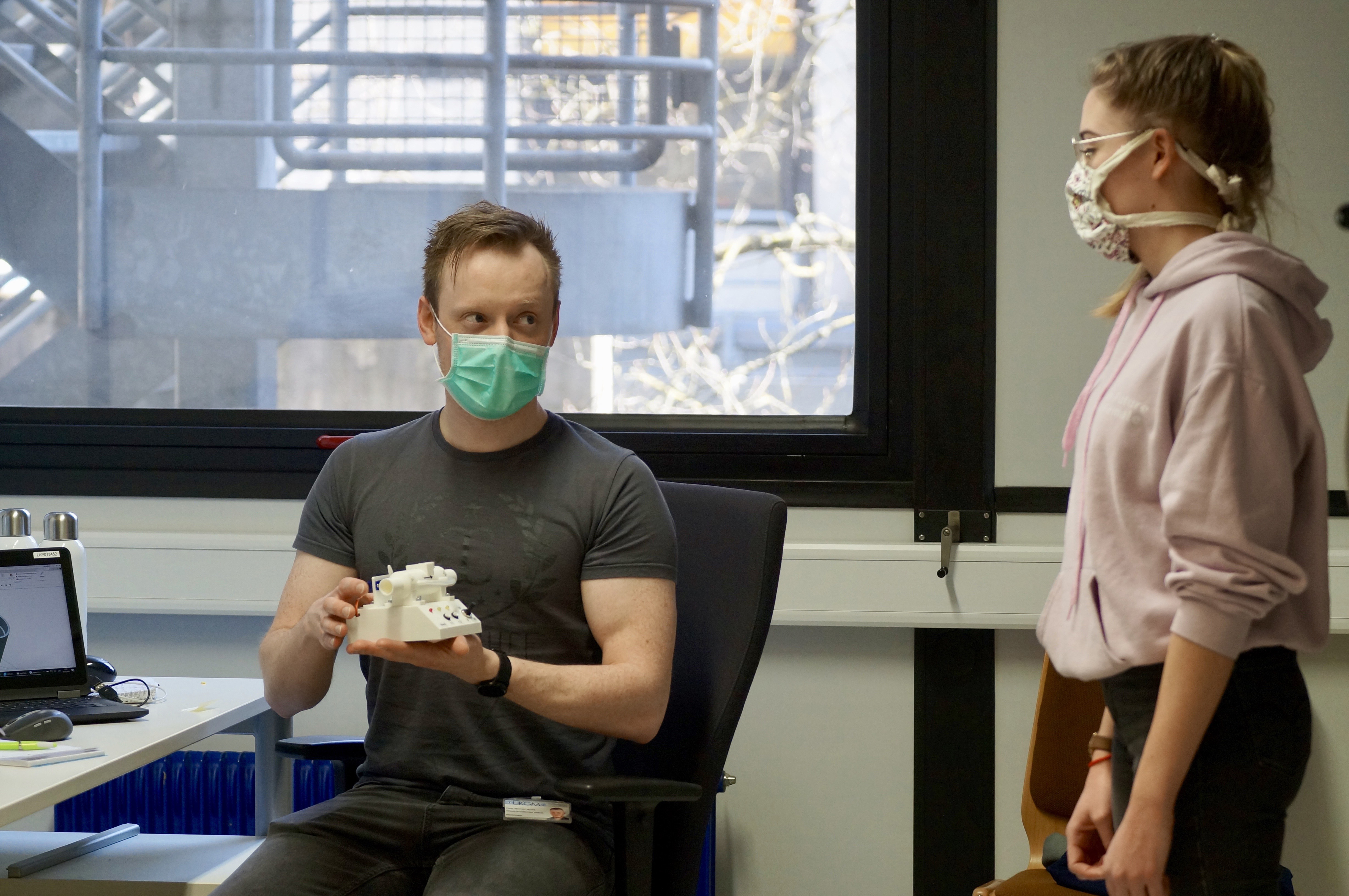 Die Gruppe entwickelte einfache Ersatzgeräte, die bei Patientinnen und Patienten mit milden Atembeschwerden eingesetzt werden können, wenn Beatmungsgeräte knapp werden; so bleiben die hochwertigen Standardgeräte den schweren Fällen vorbehalten.