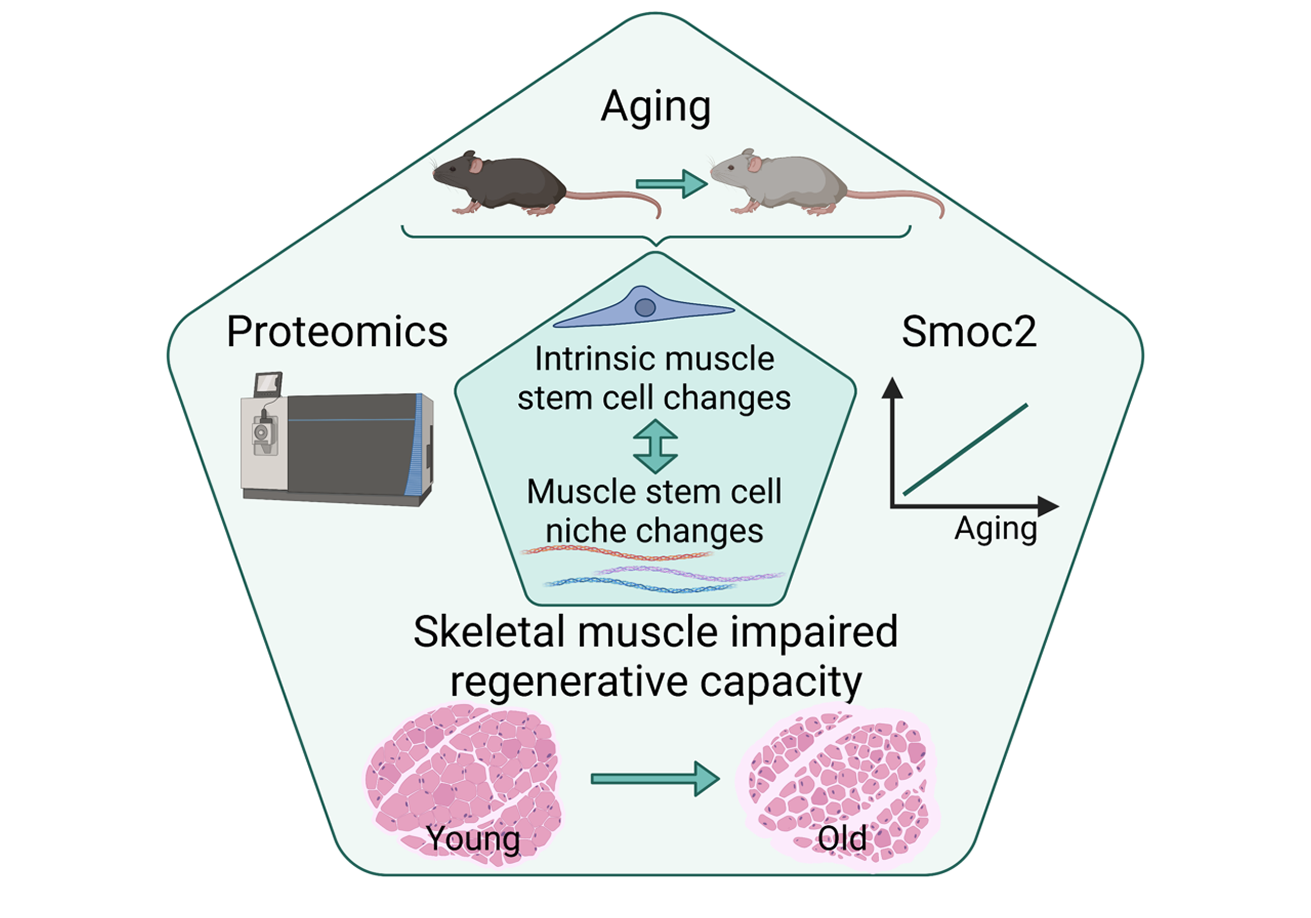 In the future, the proteomic workflows presented in this study will enable the combined analysis of the proteome and transcriptome of MuSCs, providing a deeper understanding of functional changes during aging. By highlighting major signaling pathways affected by aging and identifying which cell types contribute the most to the remodeling of the stem cell niche, this work provides a new perspective on the complex processes that lead to the decline of skeletal muscle regenerative capacity during aging, and suggests new entry points for potentially counteracting this impairment.