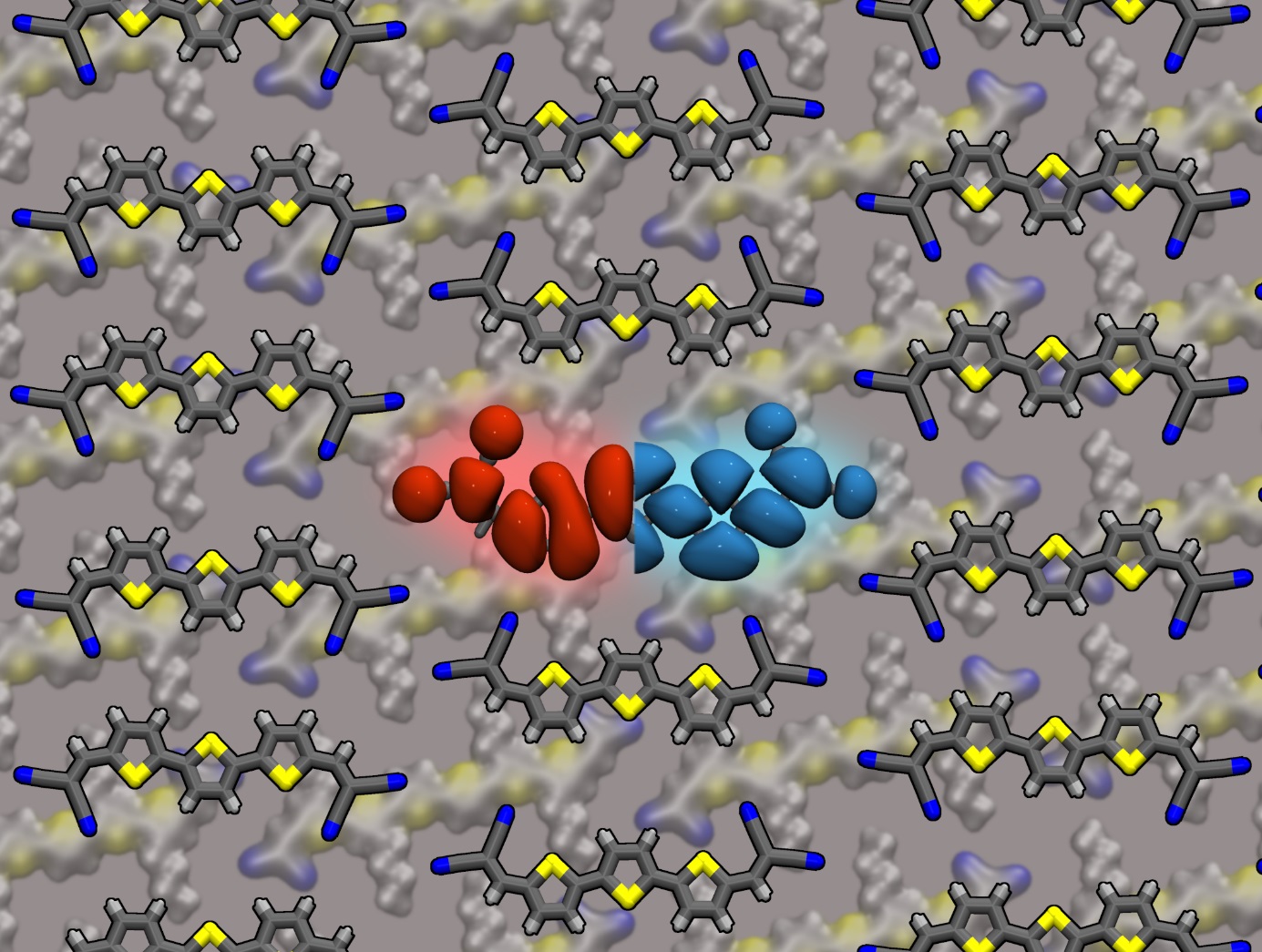 The group of Frank Ortmann was able to clarify the mechanism by simulating the structures of the blended films and their electronic and dielectric properties. A corresponding change in the molecular packing depending on the shape of the blended molecules was confirmed by X-ray scattering measurements, performed by the Organic Devices Group of Prof. Stefan Mannsfeld at cfaed. The core experimental and device work was done by Katrin Ortstein and her colleagues at the group of Prof. Karl Leo, TU Dresden.