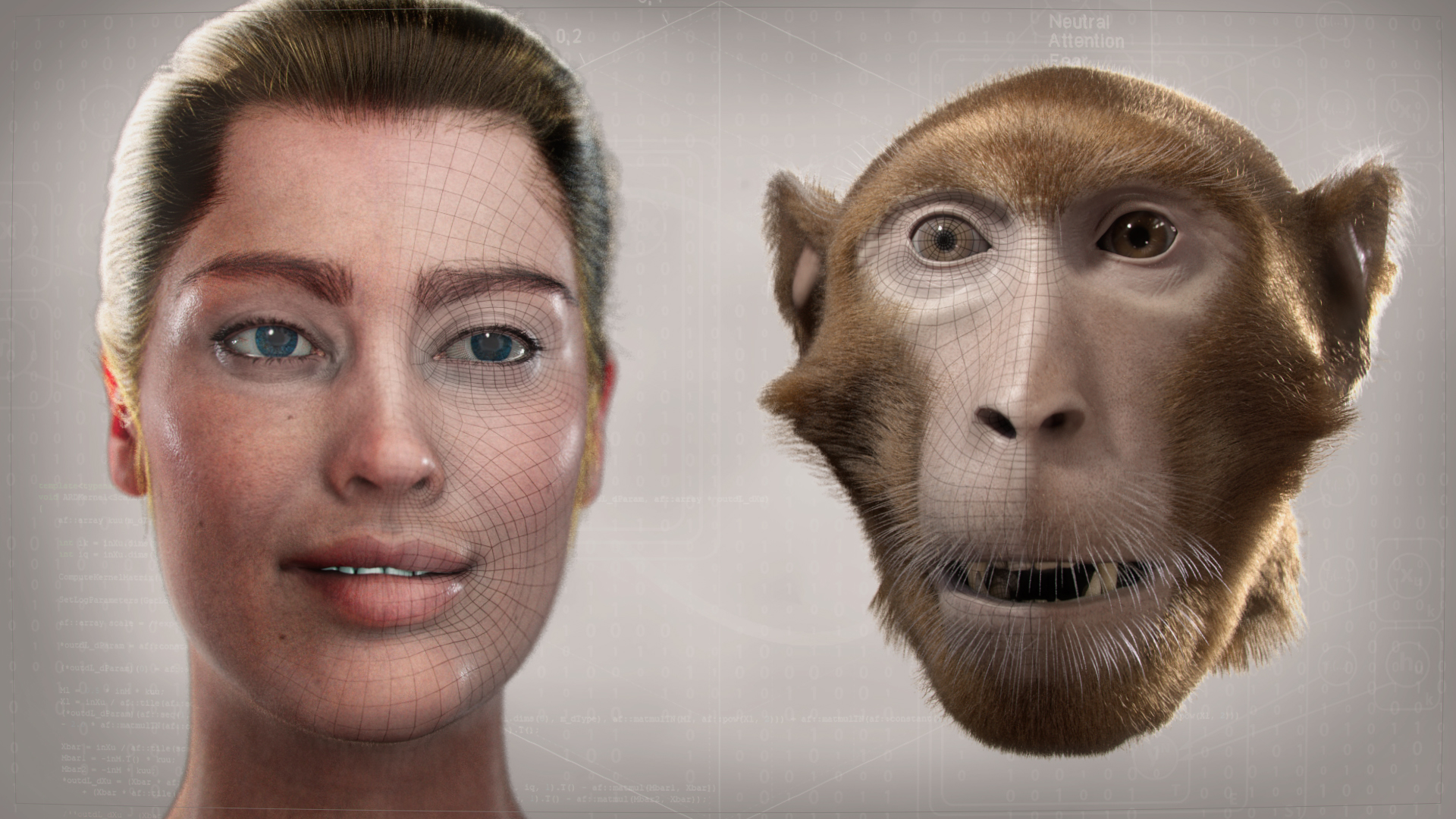 Für ihre Studie erstellten die Tübinger Wissenschaftlerinnen und Wissenschaftler dreidimensionale computeranimierte Gesichter von Menschen und Affen. „Dabei haben wir Methoden verwendet, die auch bei Hollywood-Filmen wie ‘Avatar‘ oder ‘Herr der Ringe‘ eingesetzt wurden“, sagt Nick Taubert, Erstautor der Studie. Die Forschenden konnten die Bewegung der Gesichts-Avatare kontrollieren, diese entsprachen der typischen Mimik von Menschen wie auch von Affen beim Ausdruck von „Angst“ und „Ärger“. Der Clou: der Affen-Avatar konnte auch menschliche Gesichtsausdrücke übernehmen und der Mensch-Avatar tierische Mimik zeigen.