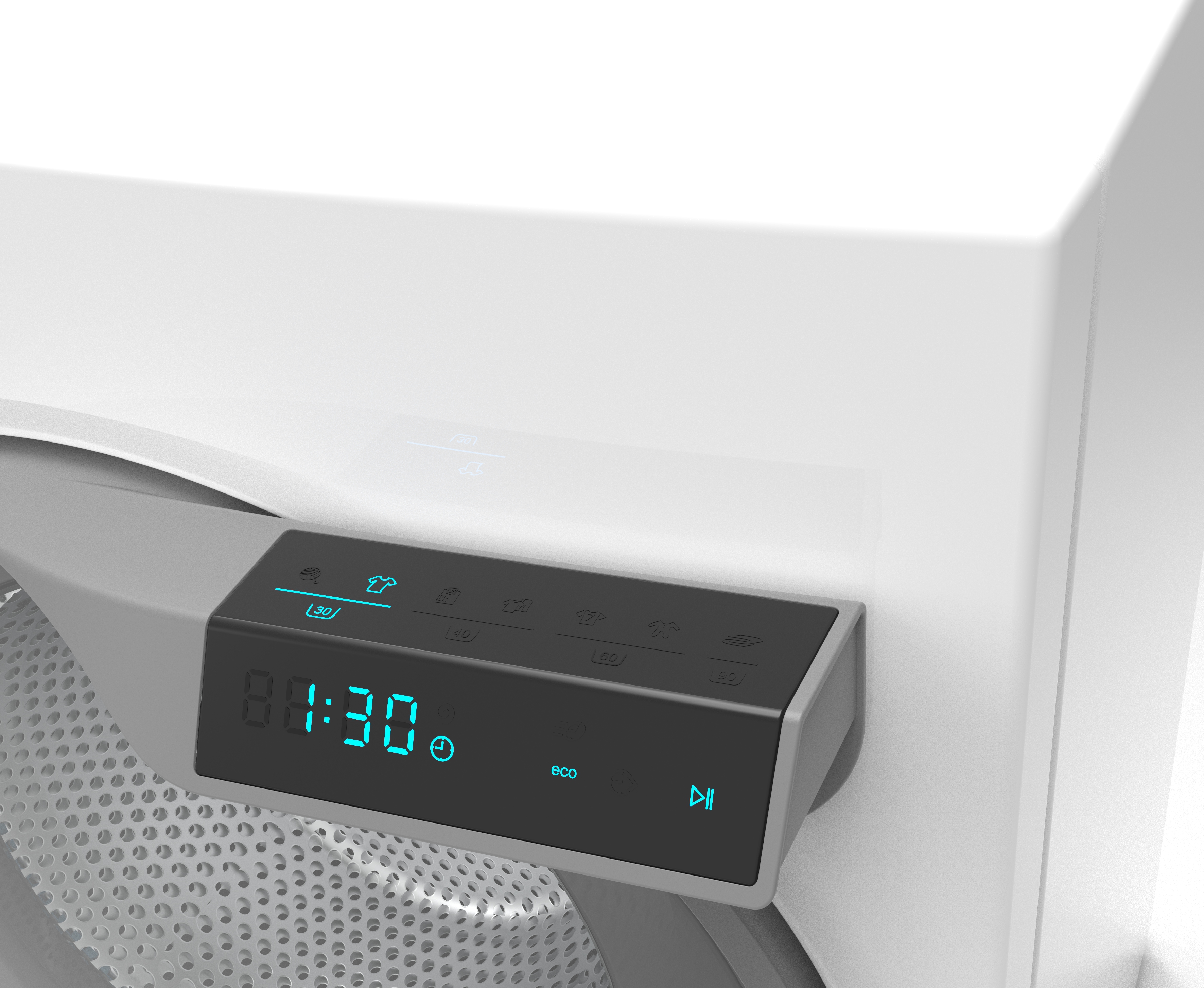 Two long-lasting trends in current technical devices such as smartphones and tablets have become indispensable: Touch instead of mechanical buttons and larger displays for display. In washing machines, touch buttons and the display are often separated, or expensive materials such as TFTs are used for high-end devices. For this reason, Fraunhofer IZM, as a pioneer of the conformable electronics required for the touch function, and PAS Deutschland GmbH have teamed up with international customers from the industry such as Bosch, Siemens and Miele to propose even more individual design elements with the development of further modular components for operating systems. Under the motto "Touch what you see", PAS has developed an operating system that uses LEDs and yet enables app-like operation. This project aimed to integrate these operating systems in even smaller installation spaces and at the same time to meet the high requirements in terms of lighting, design and function when operating the display. In the washing machine with these touch controls, the key is the loading hatch near the handle.