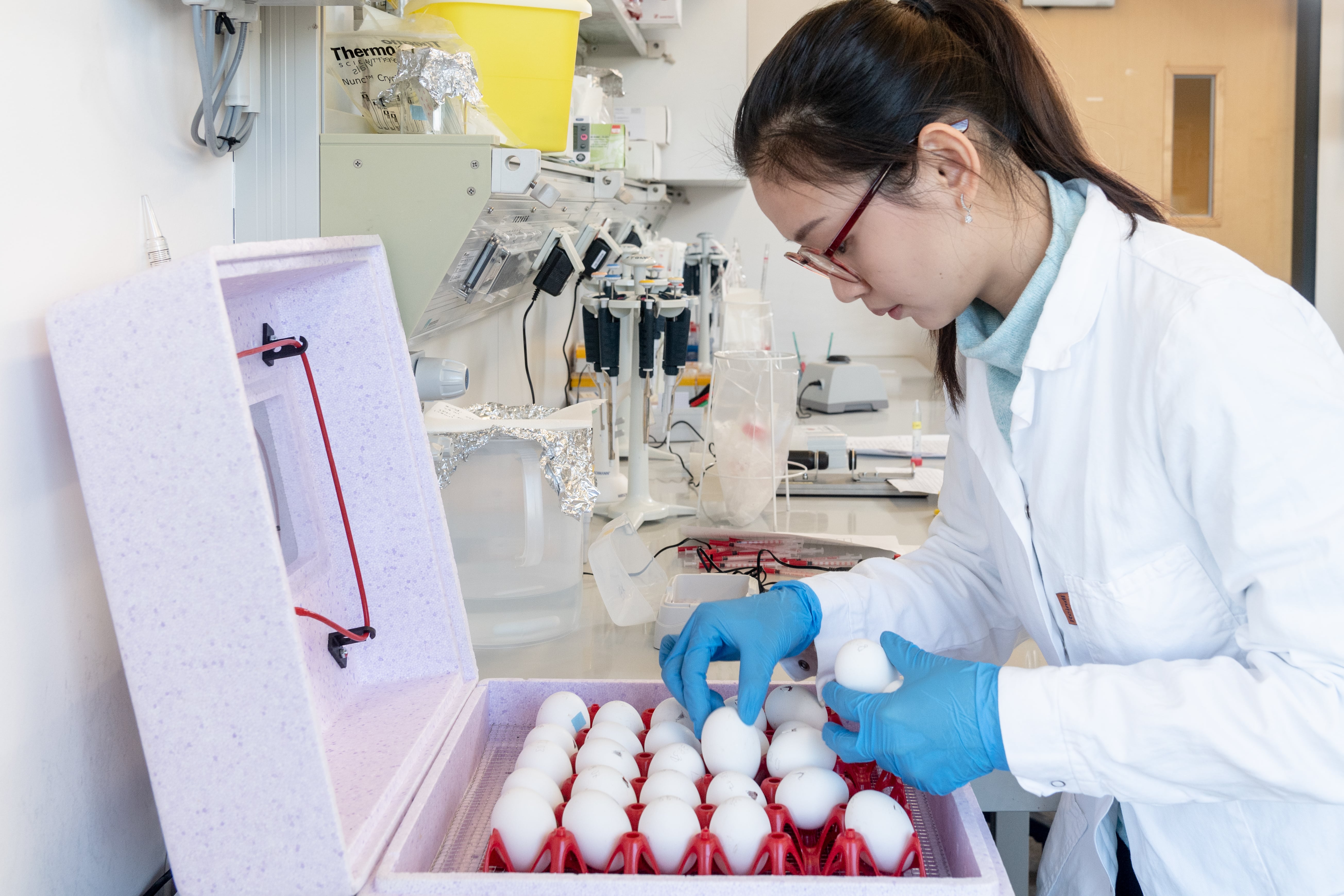 In addition, genome-edited chickens have been bred which are resistant to the avian leukosis virus. The animals were produced by the group of Benjamin Schusser, Professor of Reproductive Biotechnology. Resistance was confirmed by extensive immunological investigations and infection experiments both in cell cultures and in live animals.