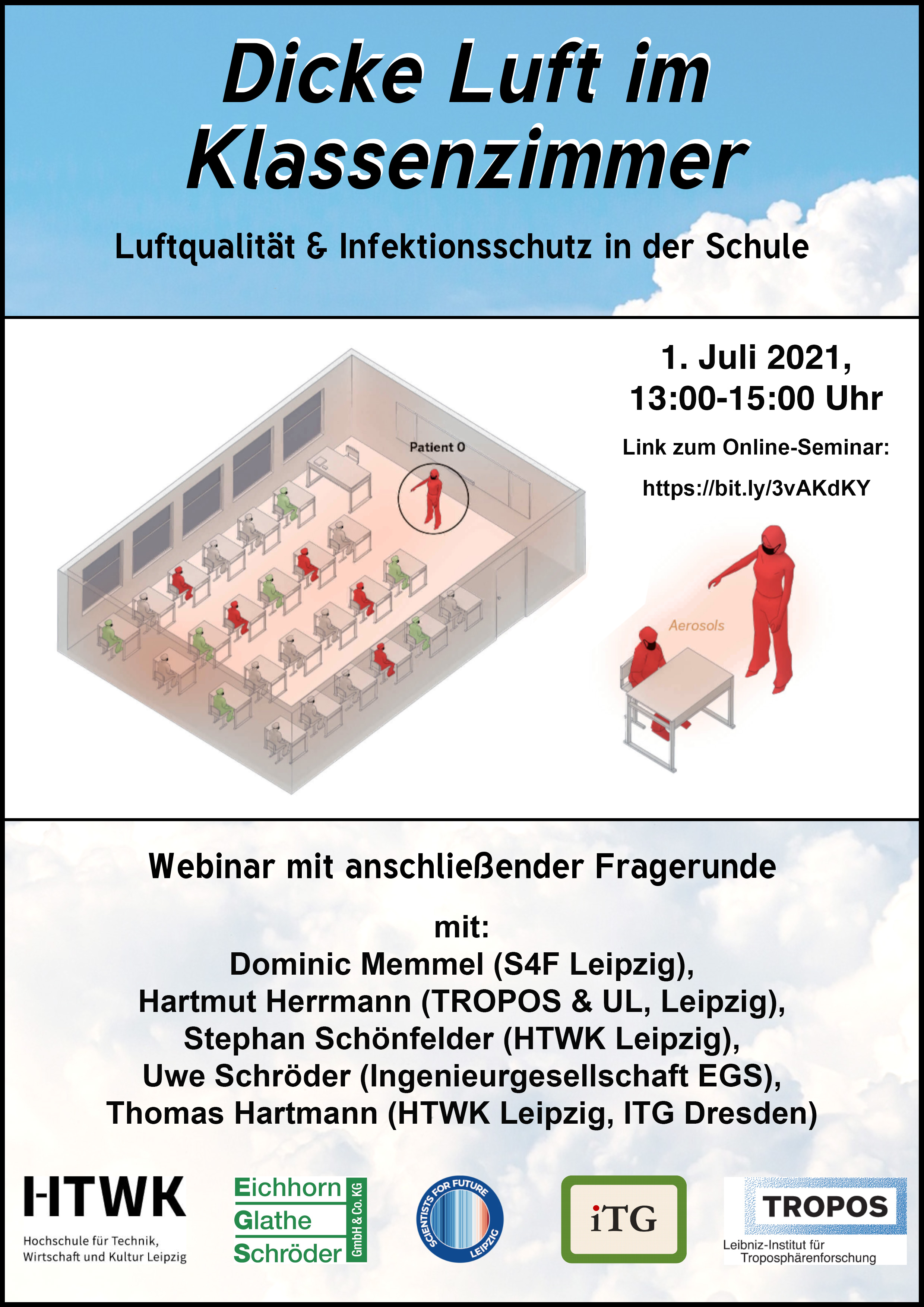 HTWK und TROPOS laden zu einer öffentlichen Diskussion zu Luftqualität & Infektionsschutz in Schulen ein: 01.07.2021, 13:00 - 15:00 Uhr