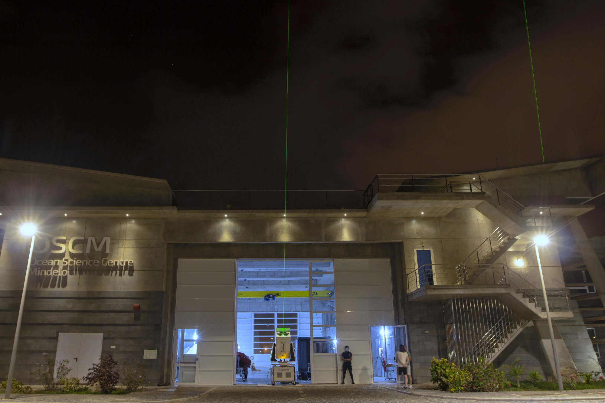 Das PollyXT vom TROPOS untersucht seit 29. Juni rund um die Uhr die Atmosphäre über Cabo Verde. Sein grüner Laserstrahl ist nachts über dem Hafen von Mindelo zu sehen, aber sowohl für die Menschen als auch die Umwelt ungefährlich. Das Gerät wurde auf dem Dach des Ocean Science Centre Mindelo (OSCM) installiert. Das OSCM ist eine gemeinsame Kooperation des GEOMAR Helmholtz-Zentrums für Ozeanforschung Kiel und des nationalen Meeresforschungsinstitut der Republik Cabo Verde – Instituto do Mar (IMar). Es dient den Partnern für eigene Forschungs- und Ausbildungszwecke wie der internationalen Meeresforschungsgemeinschaft als Basis für Kampagnen in der Region und Veranstaltungen. Mit TROPOS nutzt jetzt eine weitere Institution das Zentrum und erweitert das Forschungsspektrum um die Atmosphärenforschung in einer Region, in der kontinuierliche Klimadaten bisher Mangelware sind.