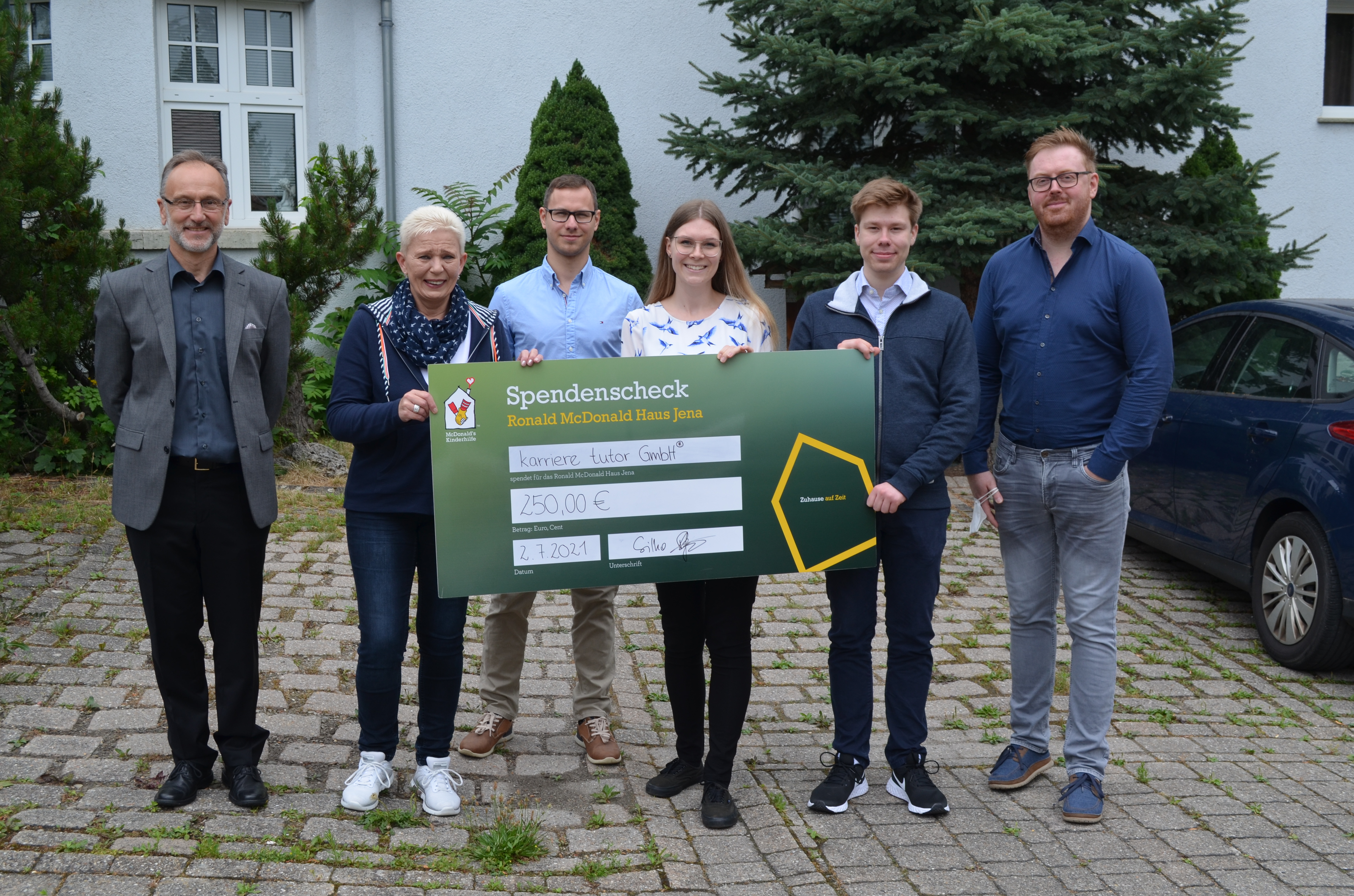 Als Anerkennung für die erfolgreiche Bearbeitung des Projektes stellte die karriere tutor® GmbH eine Prämie in Höhe von 500€ für gemeinnützige Organisationen zur Verfügung. Das studentische Projektteam entschied sich dafür, die Spende hälftig aufzuteilen. Die Wahl fiel zum einen auf das Tierheim Jena, um dieses bei den anstehenden und notwendigen Renovierungsarbeiten der Gebäude zu unterstützen. Den anderen Teil der Spende erhielt das Ronald McDonald Haus in Jena, das Familien schwerkranker Kinder ein Zuhause während der Behandlung im Uniklinikum bietet.