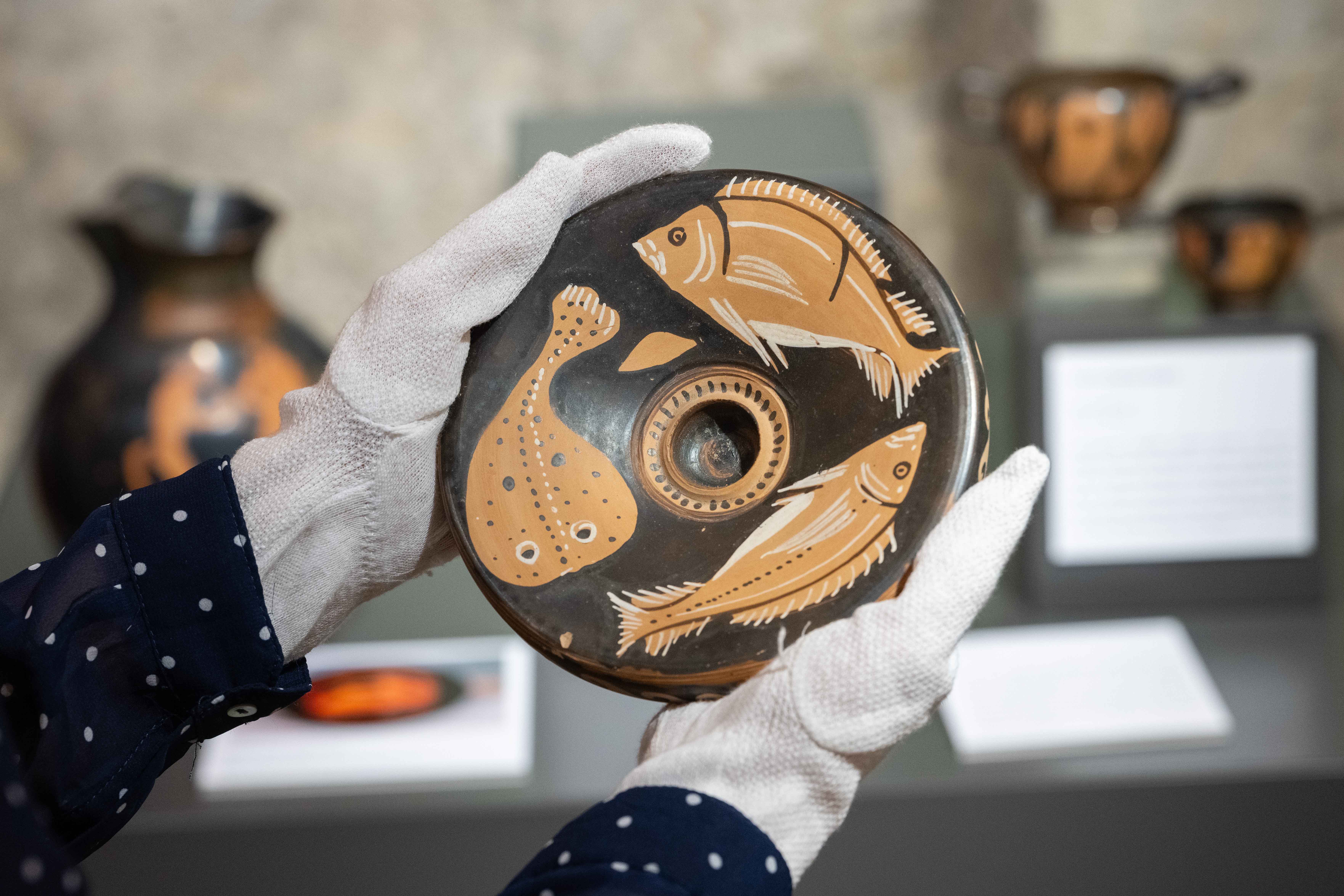 Die Ausstellung zu den antiken Essgewohnheiten thematisiert neben der römischen Esskultur auch die Weinkultur der Griechen, ihre Haute Cuisine und die Bedeutung von Nahrung in der Religion. Stefanie Adler erläutert, dass es beispielsweise um den Ablauf eines Trinkgelages geht, eines Symposions. Dabei bestimmte der Gastgeber etwa, in welchem Verhältnis der Wein mit Wasser vermischt wurde. Den Gästen wurden auch die Gesprächsthemen vorgegeben – und Musik, Tanz und Trinkspiele dienten der Unterhaltung. Bei Haute Cuisine stehen die teils recht ausgefallenen Gerichte der Oberschicht im Blickpunkt, das edle Geschirr und Tischsitten. Im Teil Speisen für die Götter werden kultische Handlungen rund um Essen und Trinken vorgestellt. „Bevor Wein getrunken wurde, musste zunächst den Göttern ein Trankopfer dargebracht werden“, sagt Adler. Geopfert wurden zudem Tiere, deren Fleisch schließlich den Armen geschenkt wurde. Für sie war es meist die einzige Gelegenheit, fleischliche Nahrung zu sich zu nehmen.