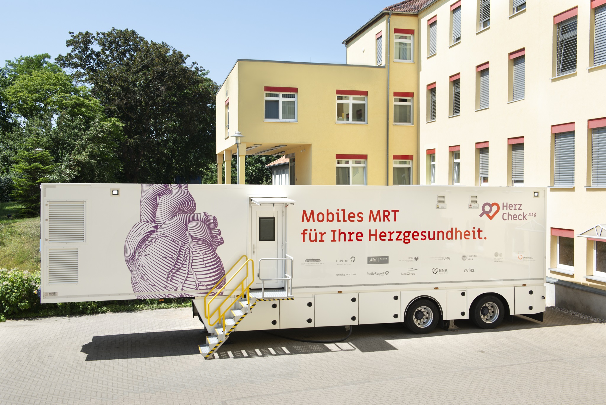 Die mobilen MRT-Einheiten können an regionalen Kliniken oder ambulanten Einrichtungen wie Ärztehäusern aufgestellt werden. Der erste mobile Standort des Projektes „HerzCheck“ befindet sich am Sana Krankenhaus in Templin. Geschultes medizintechnisches Personal führt die MRT-Untersuchung sicher und zuverlässig durch.