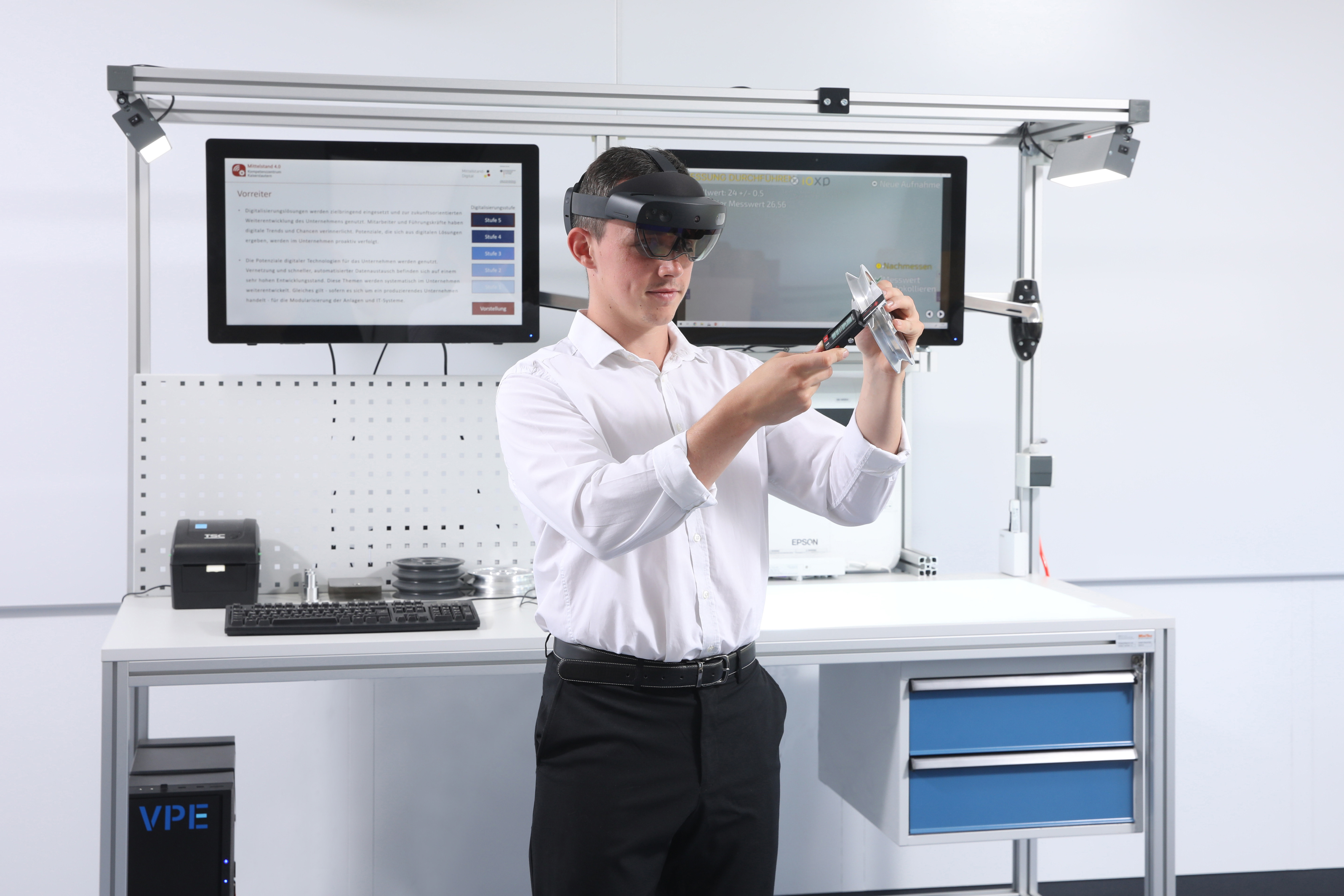 Eine entscheidende Besonderheit, die Ehemann und das VPE-Team dabei verfolgen, ist, dass sie XR-Anwendungen im größeren Zusammenhang betrachten und einsetzen. „Wir haben bei Produkten und der Produktentwicklung nicht nur einen Aspekt – wie das Design – im Blick, sondern denken Produkte von Anfang bis über das Ende hinaus im durchgängig vernetzten Produktlebenszyklus“, sagt Ehemann weiter. Dabei decke der sogenannte Engineering 4.0 Lifecycle einen mehrstufigen Prozess ab. Dieser unterstützt den Wandel traditioneller Produkte und Dienstleistungen in Richtung (smarter) Produkte und innovativer Dienstleistungen. Das beginnt mit der Anforderungsentwicklung, beinhaltet disziplinübergreifende sowie -spezifische Aspekte und reicht bis zur letztendlichen Produktnutzung und -anpassung.