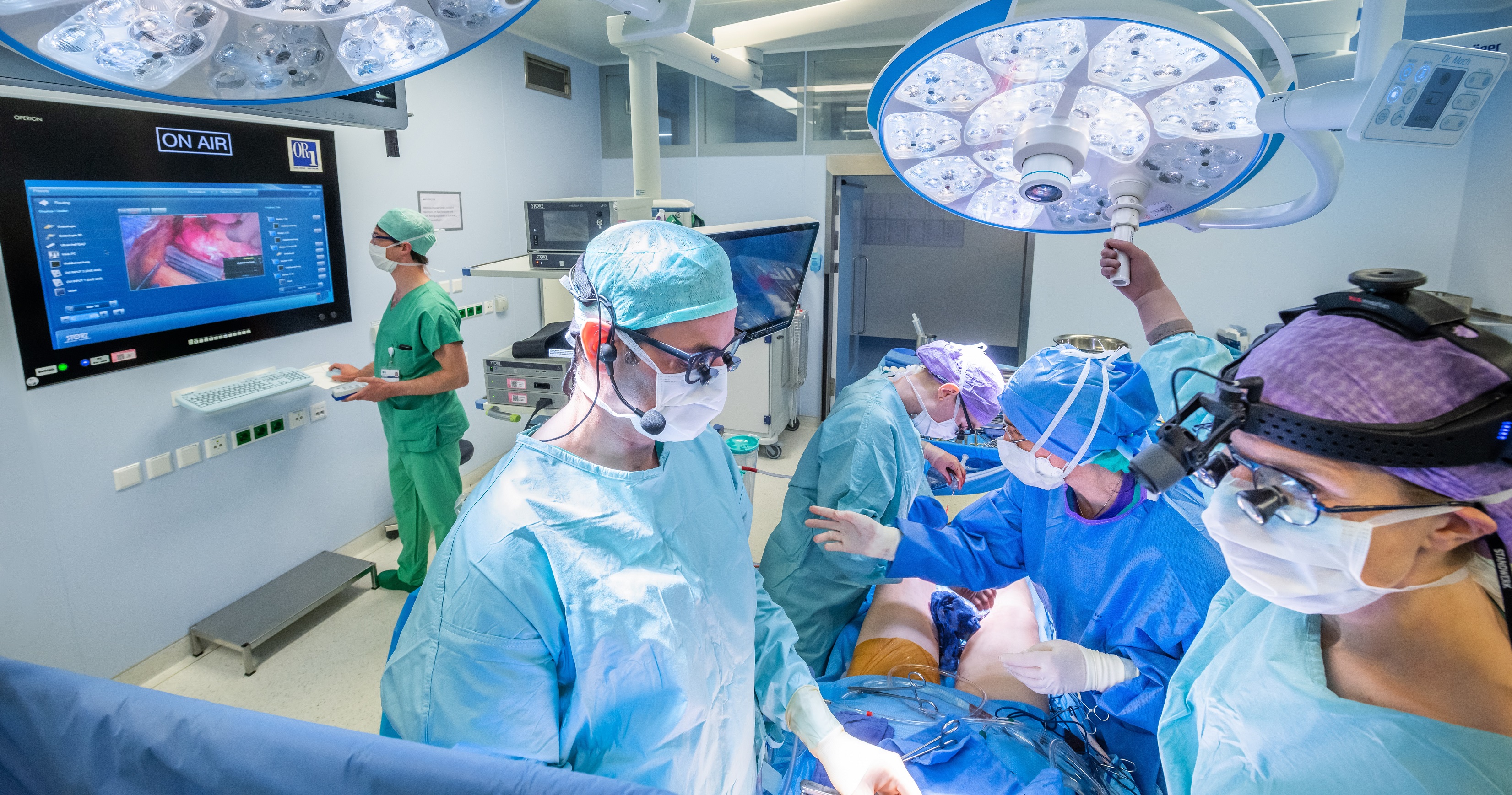 Studierende im „Herzchirurgischen Semester“ der Medizinischen Fakultät Heidelberg haben seit Kurzem die Möglichkeit, Eingriffe am offenen Herzen per „Live-Schalte“ in den OP aus nächster Nähe mitzuverfolgen. Möglich macht es ein neues Lehrformat der Klinik für Herzchirurgie in Kombination mit den technisch top ausgestatteten OP-Sälen des im Oktober 2020 bezogenen Neubaus Chirurgie. Mittels einer Kamera in der OP-Leuchte haben die angehenden Medizinerinnen und Mediziner einen unverstellten Blick auf das OP-Feld. Damit der Operateur oder die Operateurin sich voll auf den Eingriff konzentrieren kann, besteht das Team zusätzlich aus einem Oberarzt, der das Vorgehen für die Studierenden kommentiert und erläutert, sowie einem weiteren Arzt, der über Chat Fragen entgegennimmt, beantwortet oder an den Kommentator weitergibt. Das nach den ersten Live-Übertragungen bereits eingespielte Team besteht aus den beiden Oberärzten Prof. Dr. Gregor Warnecke und Privatdozentin Dr. Anna Meyer sowie Dr. Peter Rose.