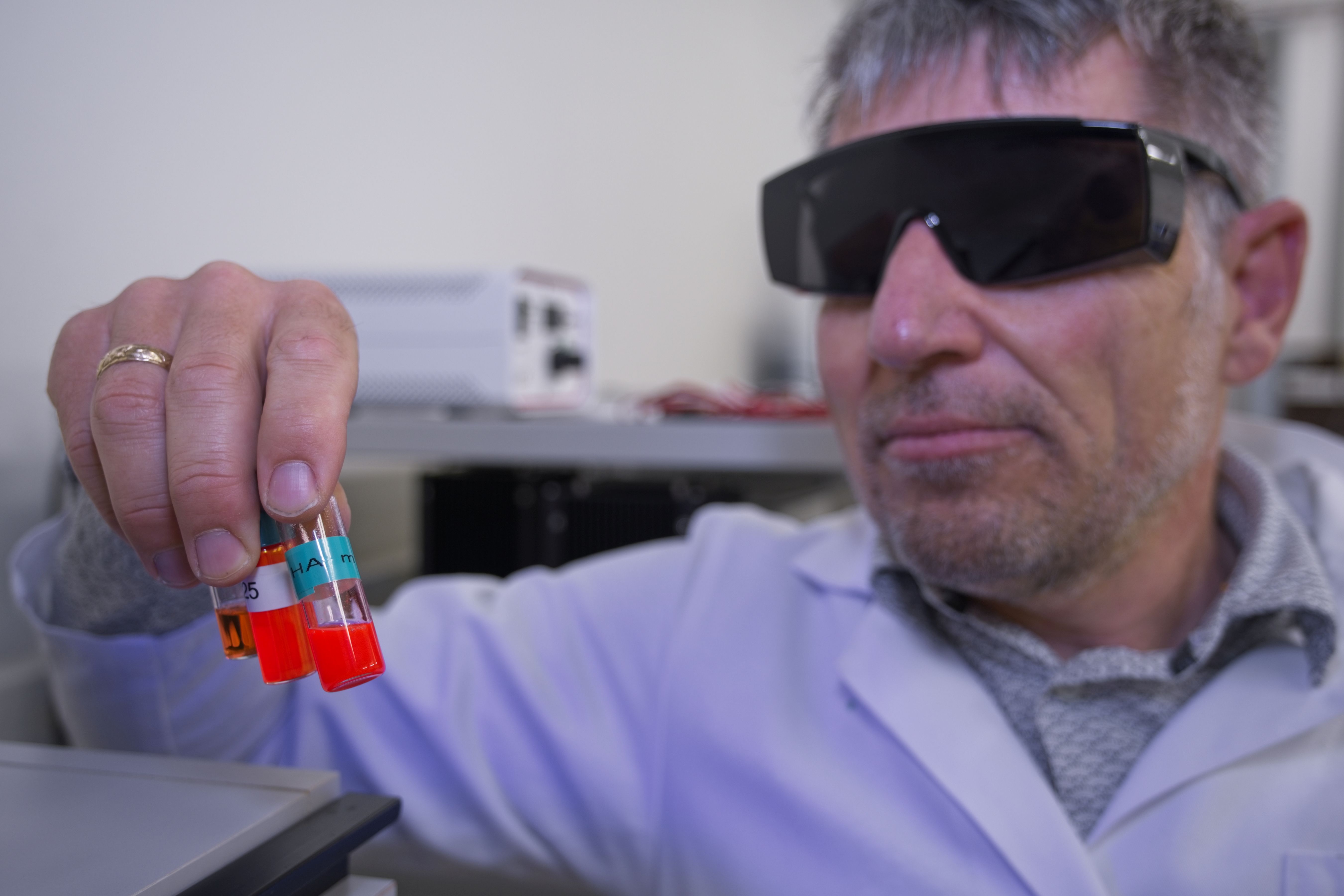 The Empa researchers observed that not just any emulsion would do the job: It had to be a so-called bicontinuous emulsion, which means the droplets suspended in the outer liquid must not be distant from each other, but must have combined to form streak-like structures. Only then does the dye under investigation form the desired defect-free J-aggregates and can "send" the absorbed energy over long distances without loss. Thus, dye molecules line up in a bicontinuous emulsion – similar to matches in a box. Only then does signal transmission succeed.