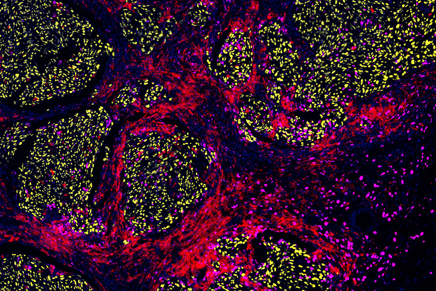 In such cases, doctors need to combine several forms of therapy in sequence. Two types of therapy, the pillars of cancer treatment, are often applied to the same patients: targeted therapy acts fast and blocks vital molecular pathways within cancer cells, thereby stopping their proliferation; immunotherapy mobilises and stimulates the patient’s immune cells to eradicate tumour cells, which can induce long-lasting responses, but acts less reliably than targeted therapy.