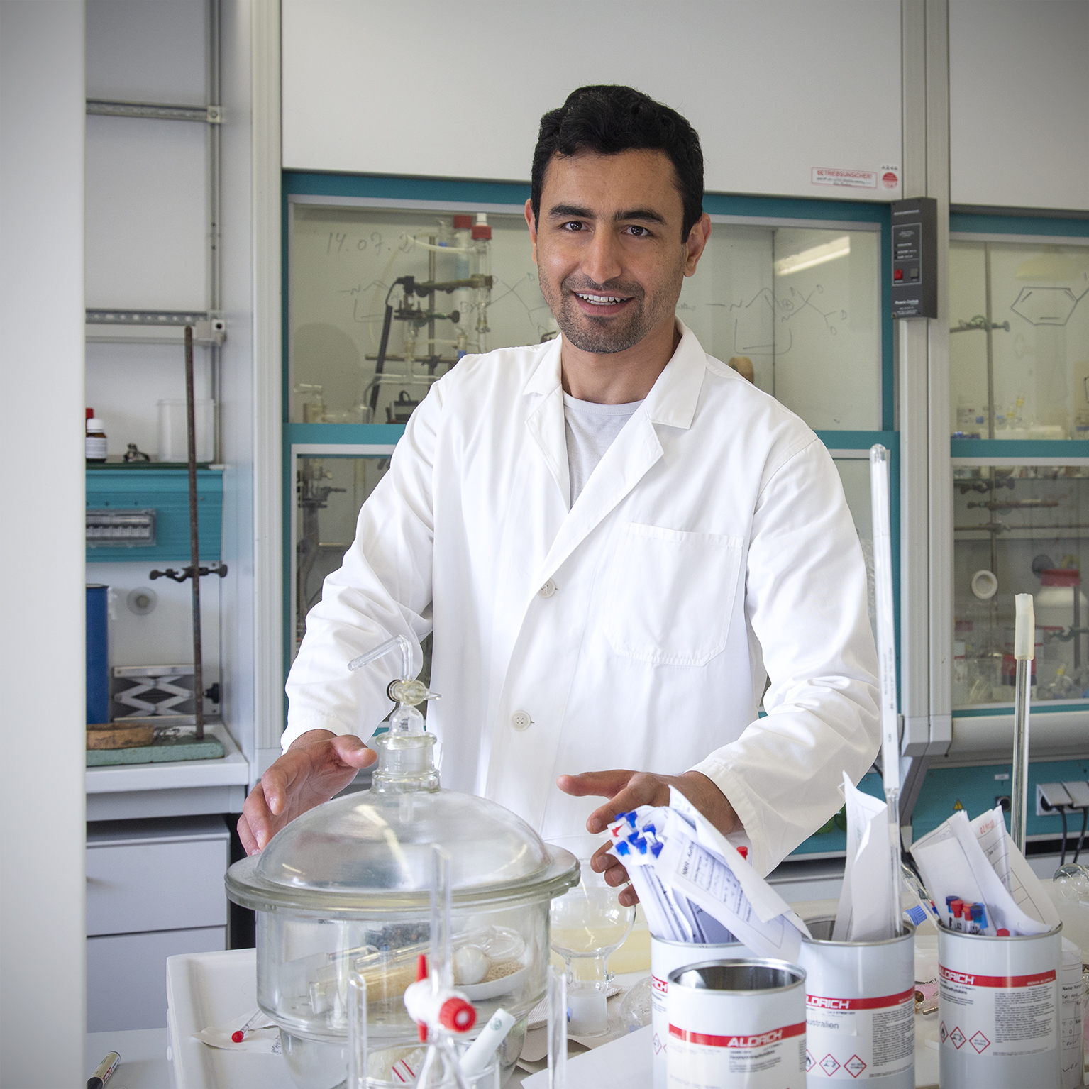 Bereits an den Universitäten im syrischen Euphrat und Allepo machte er durch gute Leistungen während seines Bachelor-Studiums auf sich aufmerksam. Im Arbeitskreis von Professor Martin Köckerling an der Universität Rostock erlernte er sein Handwerkszeug für die Chemie und warf auch seine erworbenen Kenntnisse als Trainee für die Wirtschaft mit in die Waagschale. „In Syrien hatte ich bereits eine sehr gute Chemieausbildung. Es fehlte aber eine stärkere Praxisausbildung, richtige Chemie am Abzug.“ Die hat er nun in der Physikalischen Chemie in Rostock umgesetzt und Verbindungen mit gewünschten Eigenschaften hergestellt. Auf seinem ehrgeizigen Plan stehen weitere Verbindungen, die im Arbeitskreis Ludwig auch in Experimente an Großforschungseinrichtungen wie ISIS in England untersucht werden. Für die Neutronenstreuexperimente werden gezielt isotopenmarkierte Verbindungen benötigt, die Loai Al Sheakh gerne synthetisiert. „Bisher habe ich noch nicht aufgeben müssen“, freut er sich über seinen Erfolg. Die nächsten Manuskripte über ganz neue Erkenntnisse befinden sich bereits in Arbeit. Und: Sprachlich gibt es ja kein Problem. Englisch und Deutsch beherrscht er fließend in Wort und Schrift, wie seine C1-Zertifikate ausweisen.