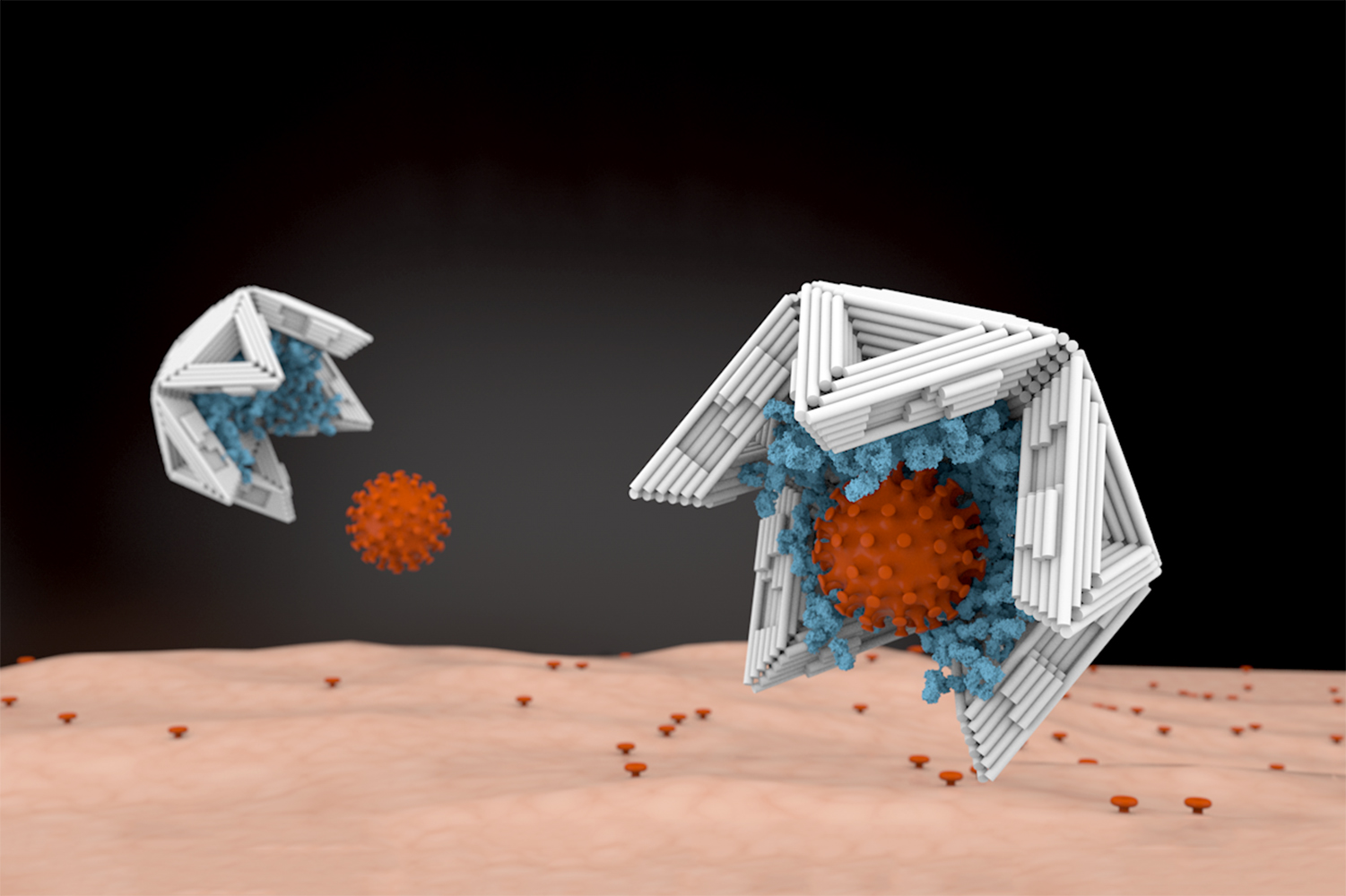"Even a simple half-shell of the right size shows a measurable reduction in virus activity," says Hendrik Dietz. "If we put five binding sites for the virus on the inside, for example suitable antibodies, we can already block the virus by 80 percent, if we incorporate more, we achieve complete blocking."