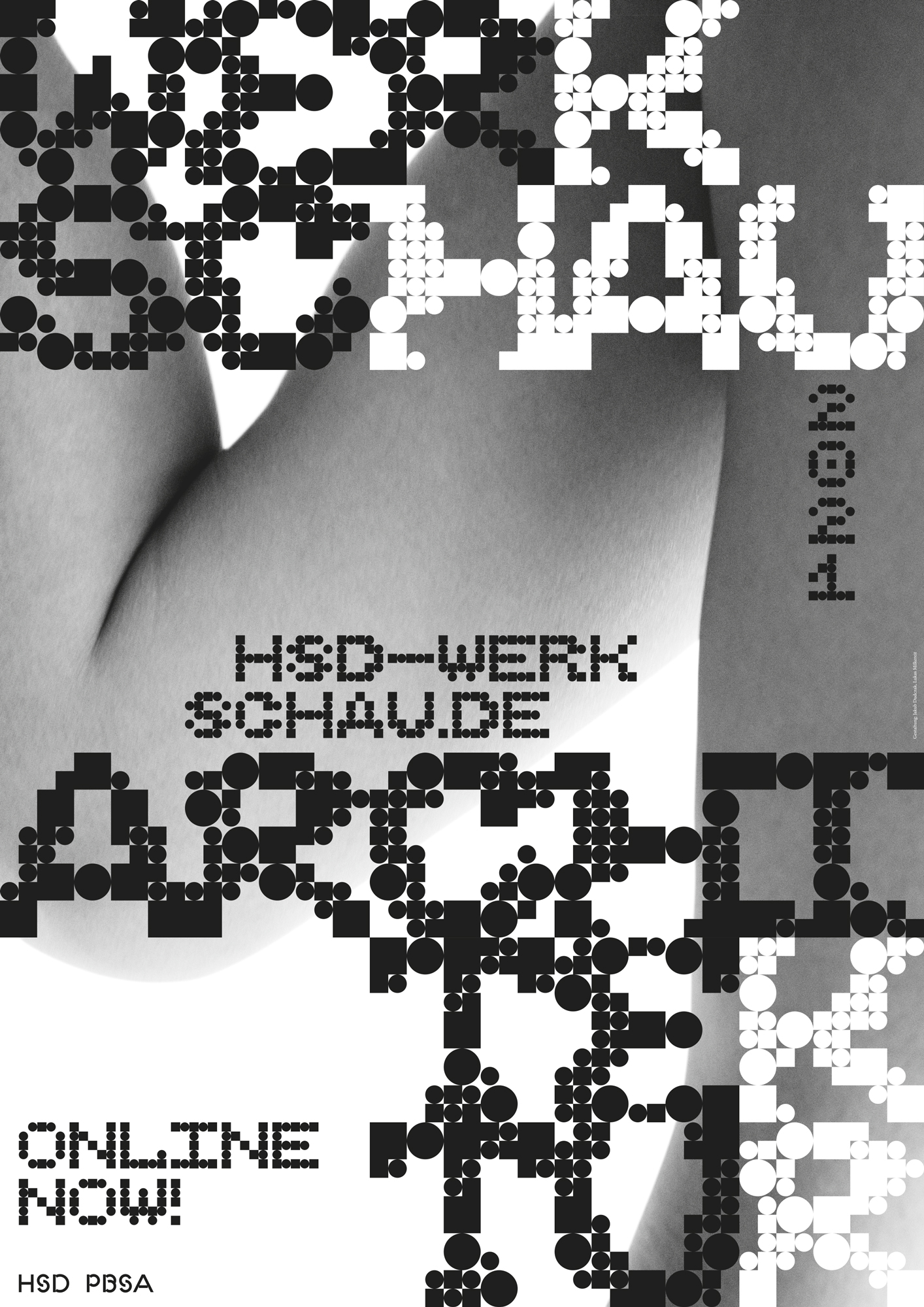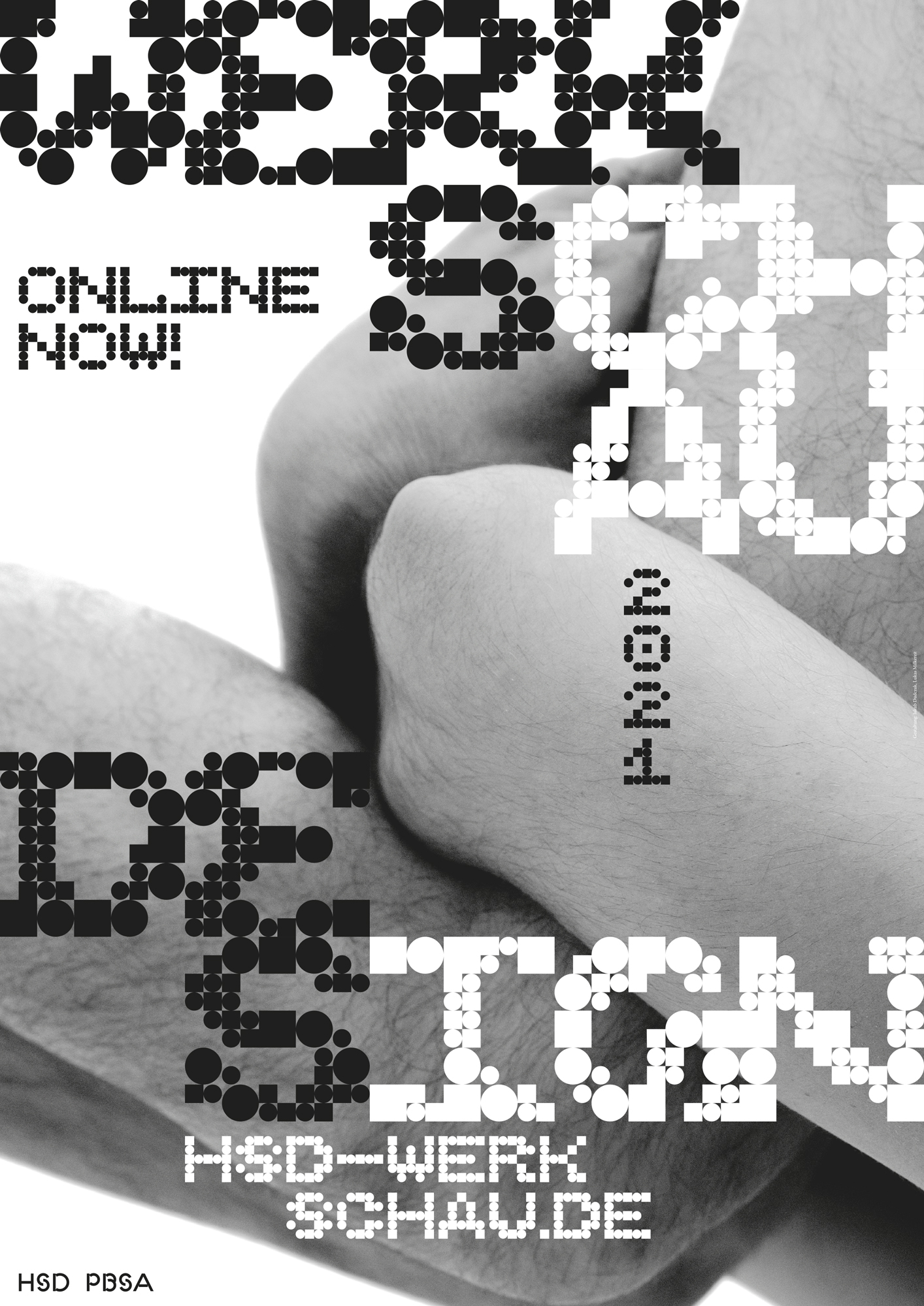 Das Thema befasst sich mit ‚Gleichgewicht zwischen Digitalität und Körperlichkeit‘. Die Studierenden Lukas Milkereit, Jakub Dudczak, Lina Wischnewski und Kira Fischer haben sich, unter der Leitung von Professor Holger Jacobs, mit dem Ungleichgewicht zwischen Körperlichkeit und Digitalität in Zeiten der Pandemie auseinandergesetzt. In der Gestaltung werden organische sowie konstruierte Elemente verwendet. Fotografien von Körperausschnitten werden mit einer konstruierten Rasterschrift kombiniert, so dass spannende Momente entstehen, die den Betrachter innehalten lassen.
