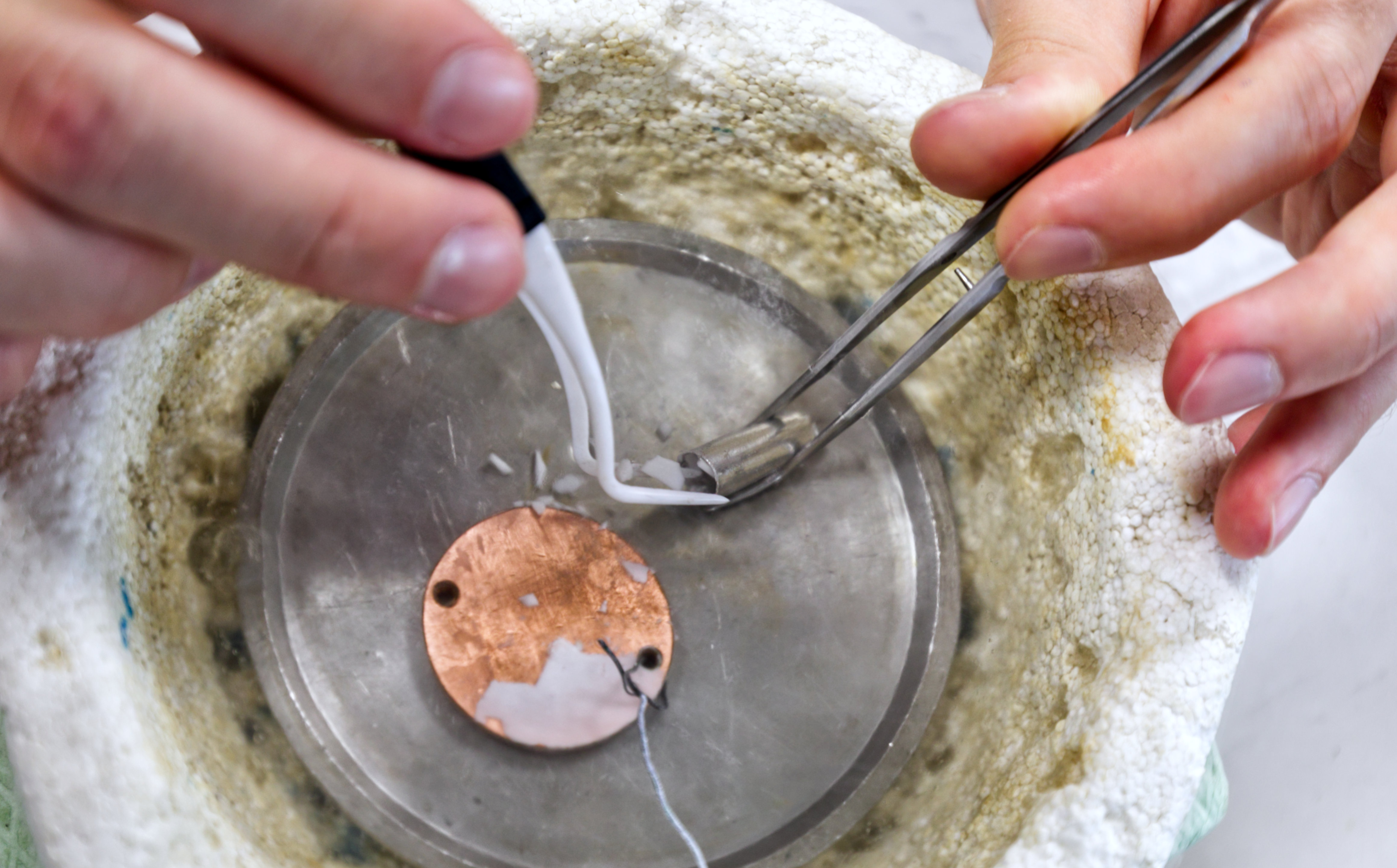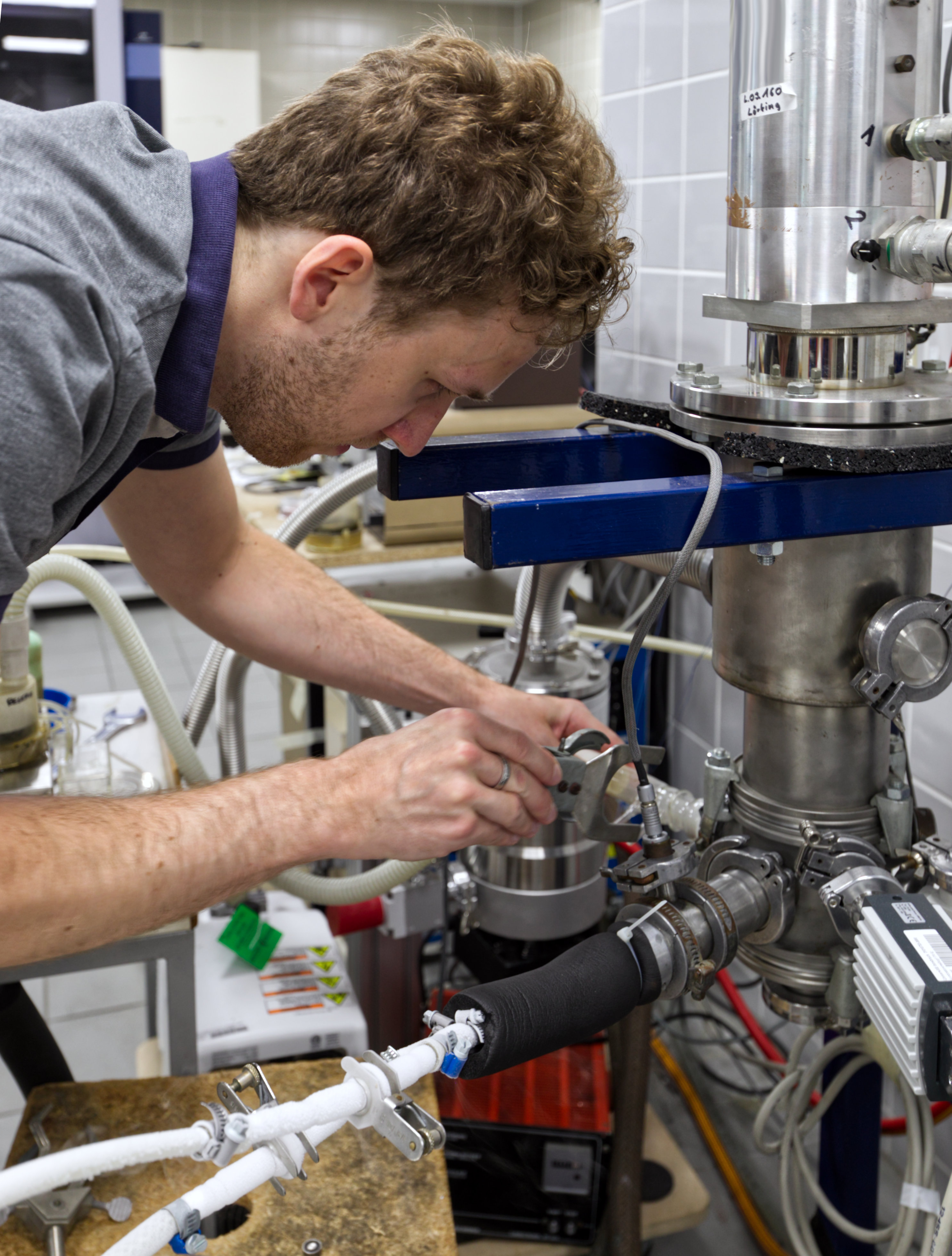 Wasser zu Glas zu erstarren ist äußerst schwierig. Es muss mit über 1 Million Grad pro Sekunde von Raumtemperatur auf unter minus 130 Grad Celsius abgekühlt werden – andernfalls kristallisiert das Wasser und es entsteht Eis. An der Universität Innsbruck wurde Anfang der 1980er-Jahre eine Technik entwickelt, die dieses extreme Abschrecken von Wasser ermöglicht. Sie ist bis heute einzigartig und unerreicht. „Im Gegensatz zu älteren Methoden wird Wasser nicht in tiefkalte Kühlflüssigkeit eingesprüht, sondern fein zerstäubt auf Ultraschallgeschwindigkeit beschleunigt und im Vakuum auf einer kalten Kupferplatte abgeschieden“, erläutert Erstautor Johannes Bachler die Methode. „Dadurch entsteht ein Glas frei von Kontamination, welches dann auch isoliert werden kann.“ Um den Übergang in eine zweite, dichtere Form zu beobachten, transferierte der Forscher das Glas in eine vorgekühlte Hochdruckzelle, wo es Drücken über 10.000 Atmosphären ausgesetzt wurde. Dafür wurden die Proben in Indium verpackt und laufend mit flüssigem Stickstoff gekühlt, damit sie sich nicht während oder gar vor der Kompression zersetzten.