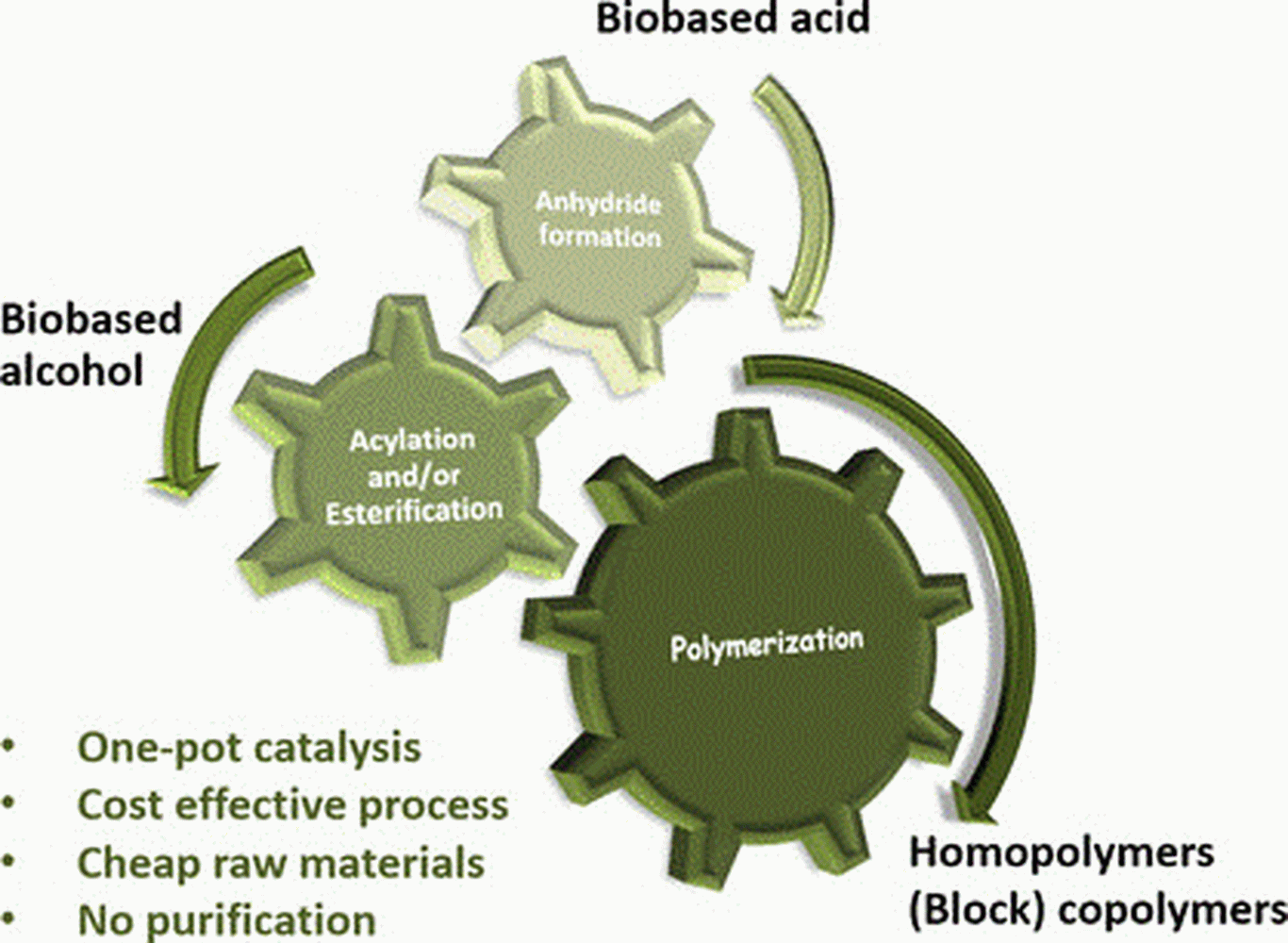 Für den ersten Syntheseschritt, die Aktivierung der Acrylsäure oder Methacrylsäure, identifizierten die Autor:innen Katalysatoren aus einfachen Salzen. Mit diesen Substanzen gelang auch die anschließende Verknüpfung der biologischen Alkohole mit Anydriden, den kondensierten Formen der Acryl- und Methacrylsäure, zu den entsprechenden Estern, den Grundbausteinen des Polymers.