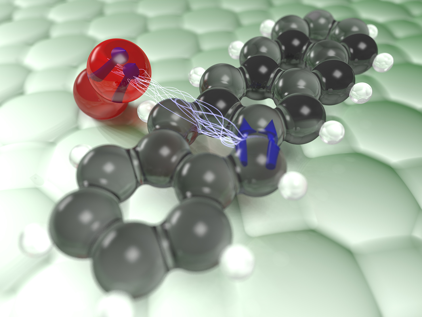 The team now succeeded in tracking this transfer of energy between dye and oxygen molecule directly in space, without destroying the dye molecule. To do this, single molecules were placed on a surface and cooled to very low temperatures close to that of the universe. Using a so-called atomic force microscope consisting of a very fine needle with just one single atom at its tip, the researchers were able to image the individual atoms of the dye molecule by scanning the tip across it. By employing a clever sequence of electrical pulses applied to the dye molecule, it could be driven into the magnetic triplet state in a controlled fashion. The energy transfer from this excited triplet state to oxygen molecules nearby was then tracked in time by measuring miniscule changes in the force acting on the tip.